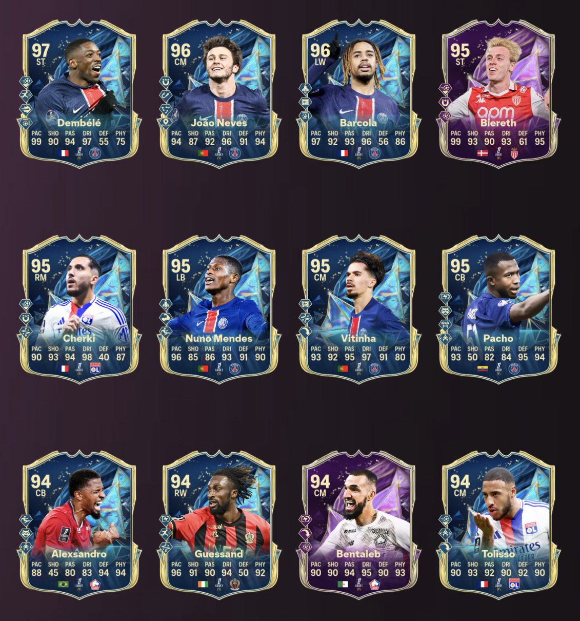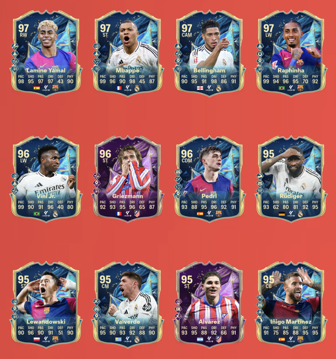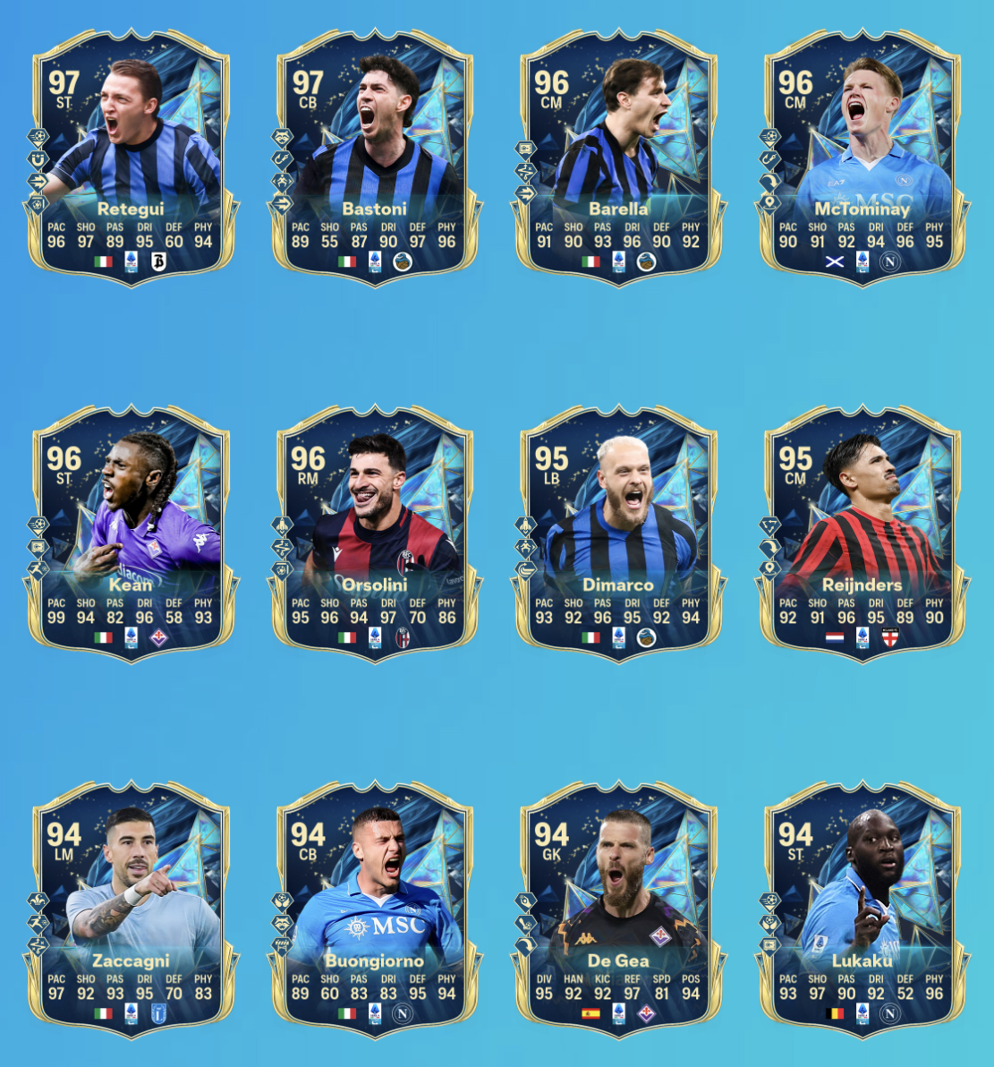 Từ những chân sút ghi bàn ổn định, tiền vệ điều phối xuất sắc đến các thủ thành chơi bùng nổ – tất cả đều được tái hiện chân thực qua từng thẻ TOTS. Chỉ số vượt trội, bộ chỉ số ẩn phong phú cùng mức độ hoàn thiện cao khiến mùa thẻ này luôn nằm trong top ưu tiên của người chơi ở mọi cấp độ.