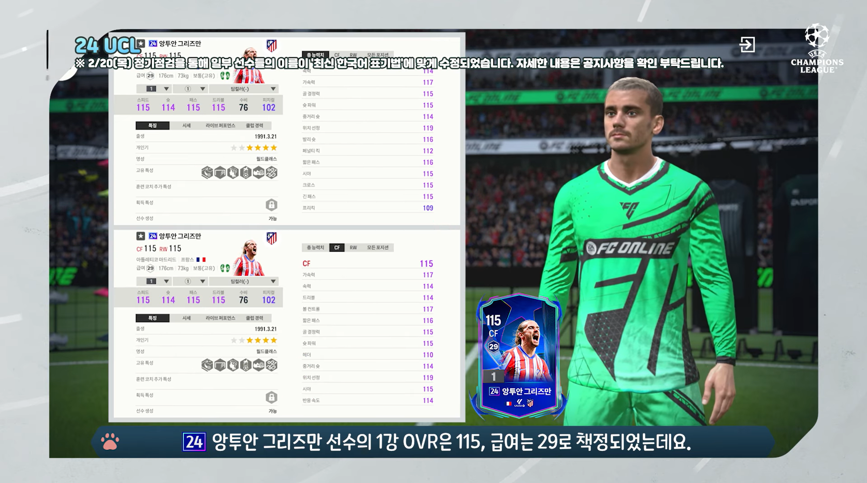 Theo như đã đượ c thông báo từ trước thì hôm nay - 20/2/2025 - FC Online Hàn chính thức ra mắt mùa thẻ mới UEFA Champions League 2024/2025 hay còn viết tắt dưới cái tên 24UCL. Mùa thẻ này mô phỏng lại các cầu thủ của các CLB đã góp mặt trong vòng 1/8 tại C1 thời điểm hiện tại.