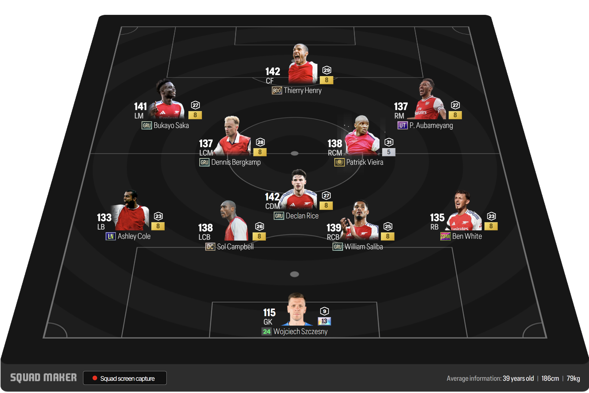 Arsenal không phải là team color quá mạnh nhưng cũng có cho mình nhiều cái tên chất lượng như Henry, Bergkamp, Saka, Rice, Saliba.... Điều này giúp việc xây dựng và vận hành đội hình Arsenal trở nên ổn định hơn trong việc leo rank.