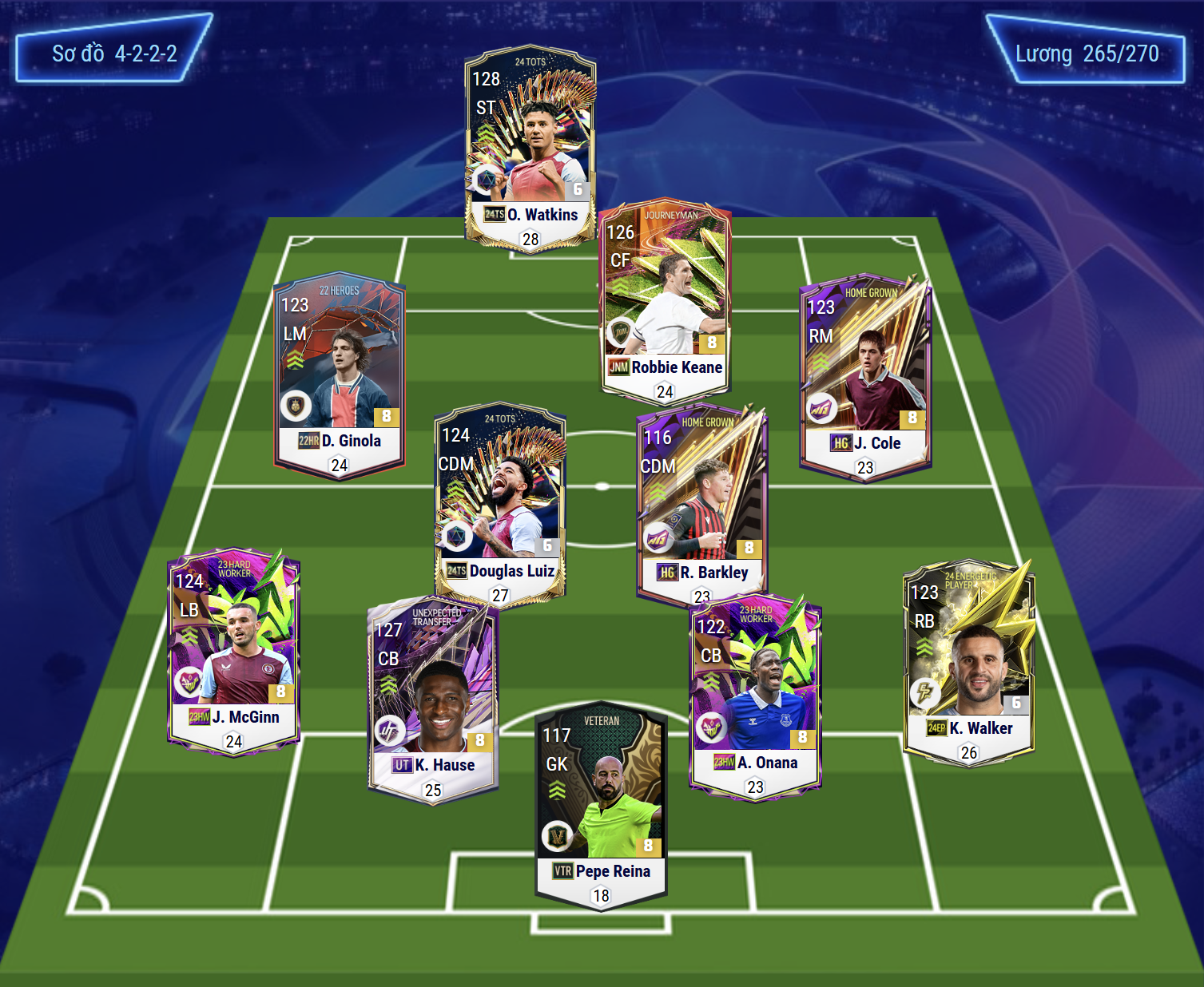 Aston Villa không phải là một team color quá mạnh nhưng lại là một team color có cho mình nhiều cái tên có giá trị sử dụng cao ở các tuyến. Điều mà các HLV cần đó chính là lựa chọn nhân lực cùng một chiến thuật phù hợp là hoàn toàn có thể leo rank cao.
