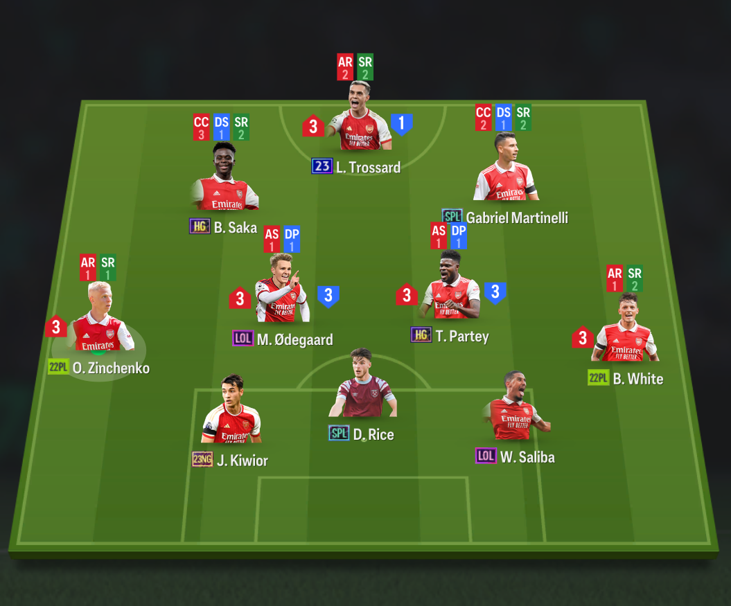 Chiến thuật đơn được thiết lập như hình để tối ưu lối chơi của từng vị trí trên sân.