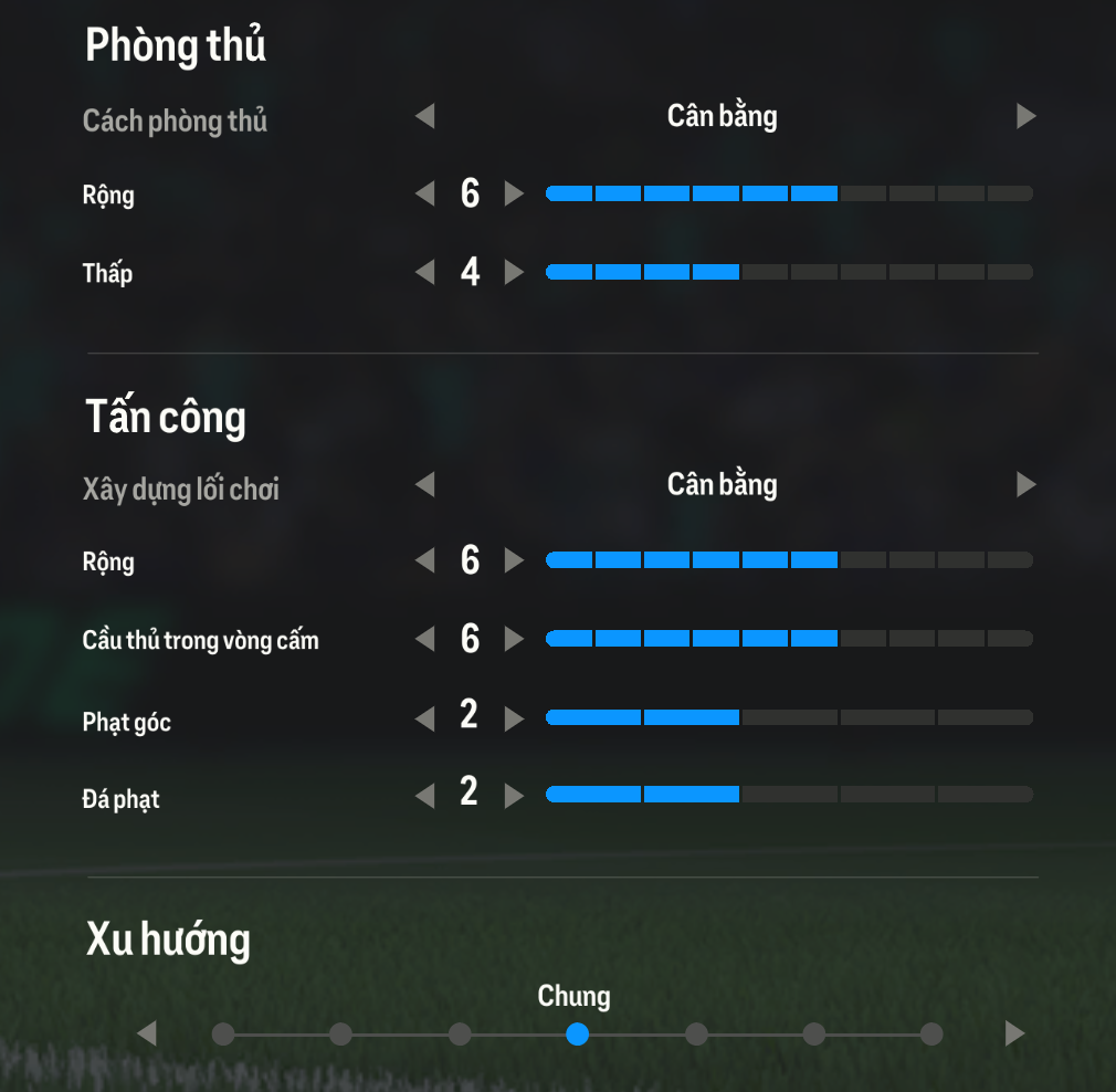Lối chơi phòng ngự cân bằng là ưu tiên hàng đầu cùng với đó là xu hướng phòng ngự rộng 6 - thấp 4 vừa đủ để đội hình lui về không quá thấp, giữ khoảng cách với nhau ở mức trung bình sẽ giúp bọc lót và hỗ trợ cho nhau tốt hơn.