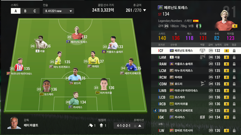 Sơ đồ 41221 với vị trí tiền đạo cắm được tin dùng là Fernando Torres. Cặp đôi tiền vệ công LAM,RAM cực sáng giá và có giá trị sử dụng cao là Raul và Carlos Soler. Thi đấu phía dưới là bộ đôi tiền vệ trung tâm Parejo cùng với Trigueros.