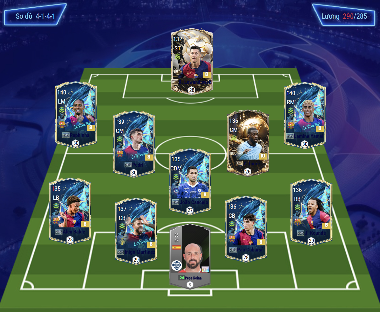 Barcelona đương đại trong FC Online là hình ảnh của một đội bóng đang từng bước tái sinh, nơi quá khứ huy hoàng hòa quyện cùng khát vọng trẻ trung. Không còn sở hữu dàn sao “Galactico” như thời hoàng kim, nhưng “Blaugrana” ngày nay vẫn giữ nguyên bản sắc bóng đá đặc trưng – kiểm soát, sáng tạo và cống hiến.