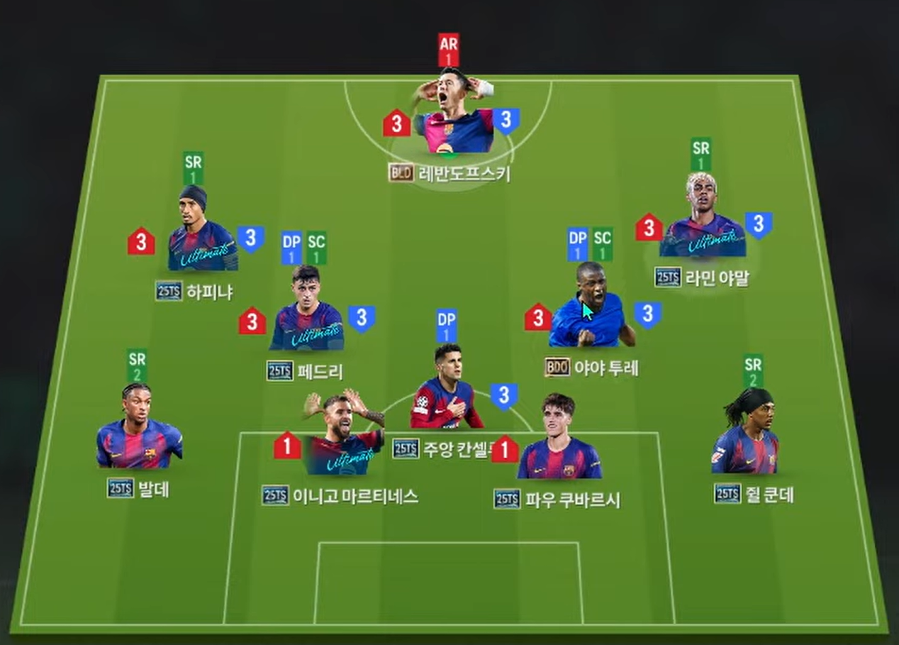 Sơ đồ được lựa chọn là sơ đồ 4141 với dàn tiền vệ đông đảo sẽ phù hợp cho lối chơi ban bật phối hợp ngắn vốn đã thành thương hiệu của Barca. Tiền đạo cắm trong sơ đồ này là Lewandowski, một trong những tiền đạo sở hữu khả năng ghi bàn toàn diện cùng AI di chuyển cực kì thông minh. Bộ đôi tiền vệ cánh Raphinha và Yamal đều là những cầu thủ sở hữu tốc độ cùng khả năng xâm nhập biên chất lượng, kỹ năng rê dắt bóng lẫn dứt điểm đều hiệu quả.