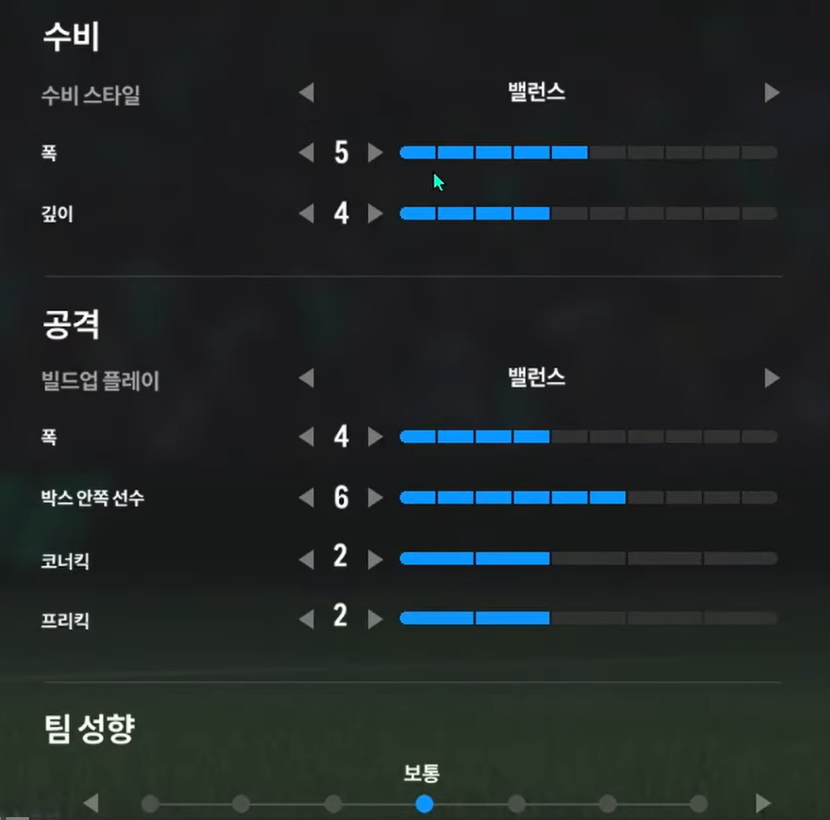 Trong khi, thiết lập tấn công "cân bằng" sẽ phù hợp cho lối chơi kiểm soát bóng, triển khai thế trận chậm, chắc ở tuyến giữa và ban bật với các vệ tinh trên hàng công để mở ra khoảng trống và ghi bàn. Ở lối chơi tấn công này, xu hướng triển khai sẽ là xu hướng chậm, chắc bóng và tìm kiếm cơ hội thay vì tấn công tổng lực và tốc độ cao.