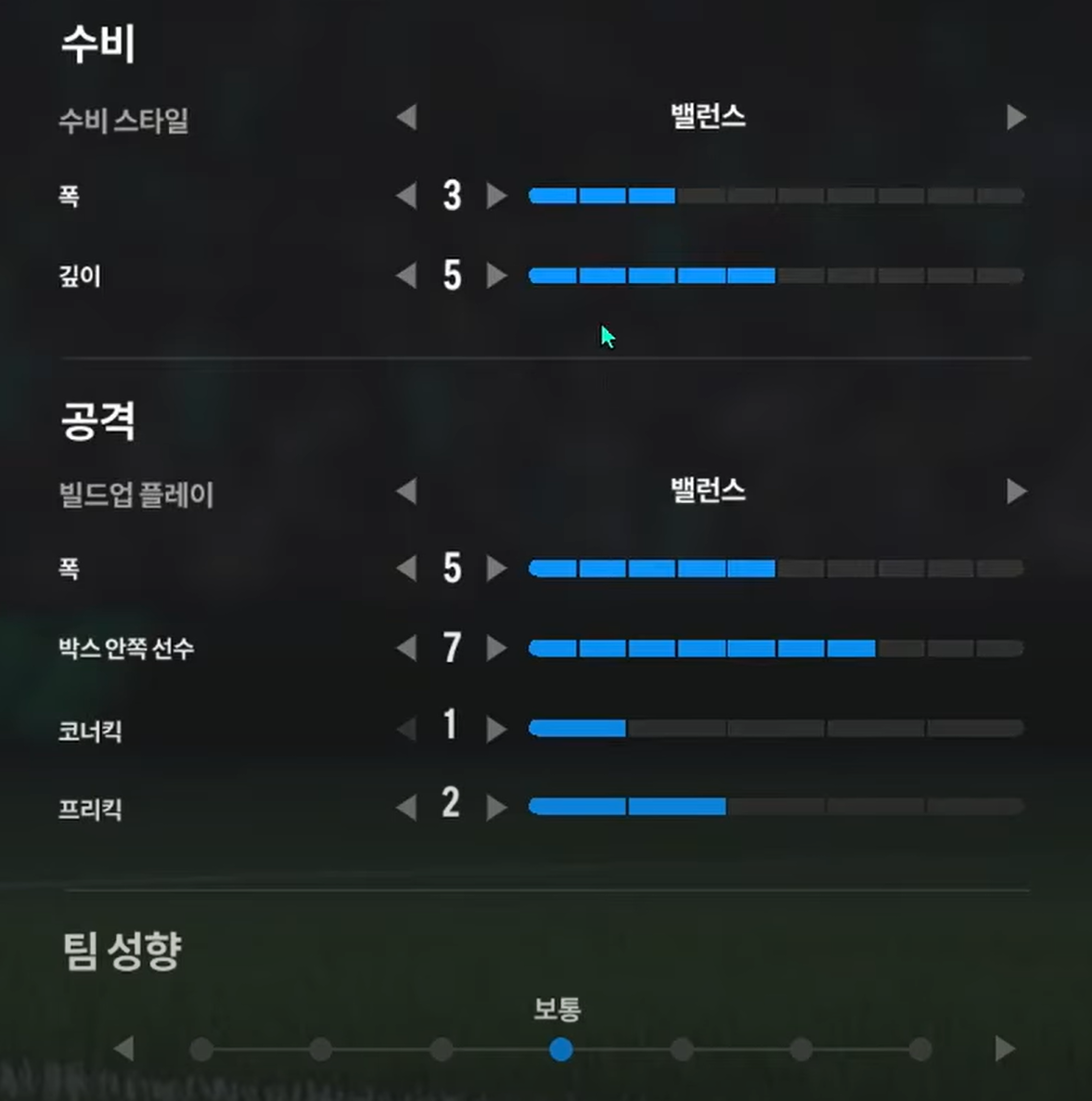 Trong khi, thiết lập tấn công "cân bằng" sẽ phù hợp cho lối chơi kiểm soát bóng, triển khai thế trận chậm, chắc ở tuyến giữa và ban bật với các vệ tinh trên hàng công để mở ra khoảng trống và ghi bàn. Ở lối chơi tấn công này, xu hướng triển khai sẽ là xu hướng chậm, chắc bóng và tìm kiếm cơ hội thay vì tấn công tổng lực và tốc độ cao.