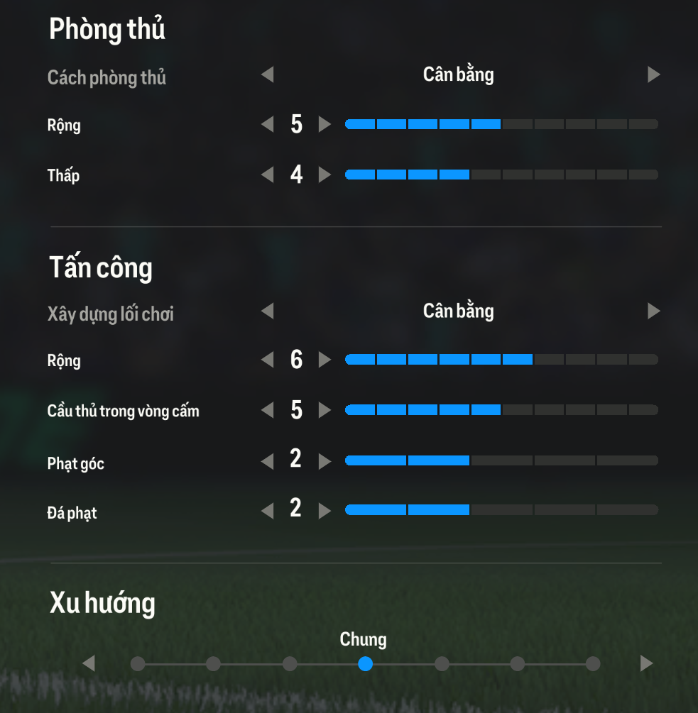 Chiến thuật đội với lối chơi phòng ngự cân bằng và thiết lập xu hướng rộng 5 thấp 4 đảm bảo cự li đội hình phòng ngự cơ bản, phù hợp với meta hiện tại và xoay chuyển lối chơi phòng ngự dựa theo tấn công của đối thủ.
