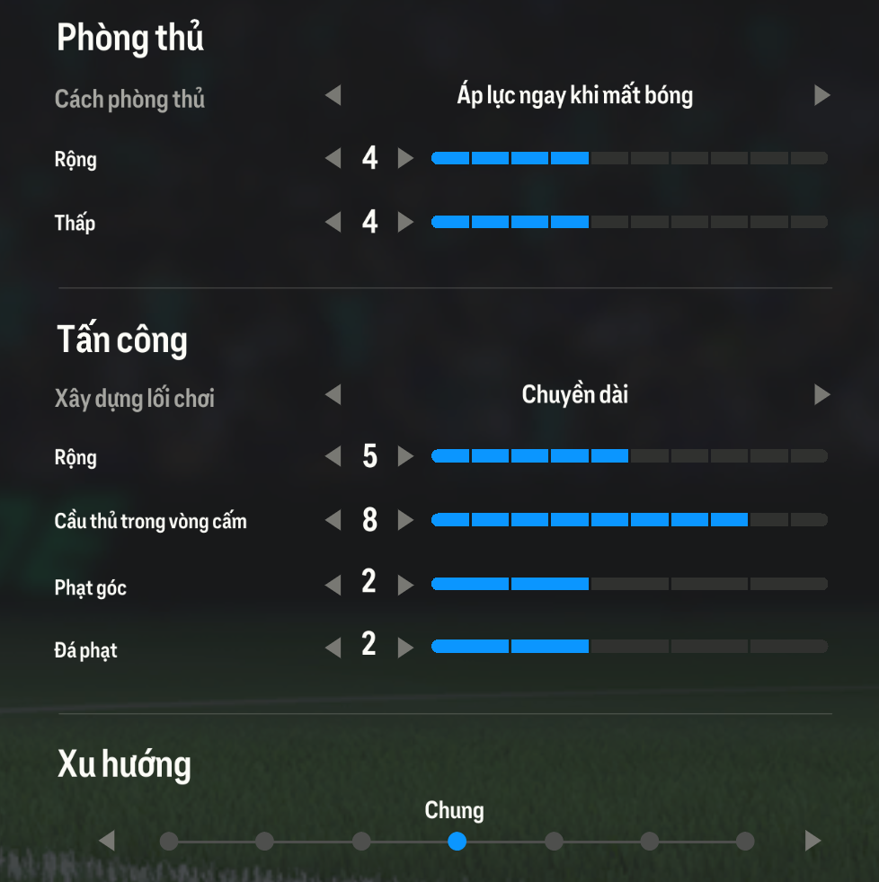 Tấn công với đường chuyền dài sẽ giúp triển khai những đường chuyền bổng xuyên tuyến hoặc tạt bóng hiệu quả hơn. Nó sẽ giúp bộ 3 tiền đạo phía trên tận dụng được khả năng không chiến nhờ chiều cao. Ngoài ra, thiết lập này sẽ giúp giữ cho vị trí tiền vệ không dâng quá cao, kiểm soát khu vực giữa sân một cách tối ưu nhất cho triển khai lối chơi cũng như thiết lập phòng ngự.