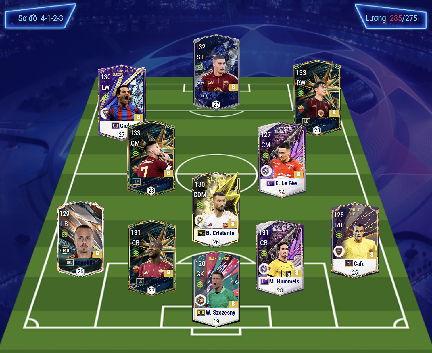 Bộ tứ vệ với Angelino và Cafu sở hữu tốc độ và AI phòng ngự khá hiệu quả, không những vậy, khả năng hỗ trợ tấn công tốt cũng giúp cho các tình huống triển khai đa dạng và hiệu quả. Trung vệ Ndicka và Hummels sẽ là những cái tên hiệu quả cả về khả năng không chiến lẫn AI phòng ngự ở những pha cắt bóng. Thủ môn Szczesny sẽ là cái tên đáng dùng trong khung gỗ.