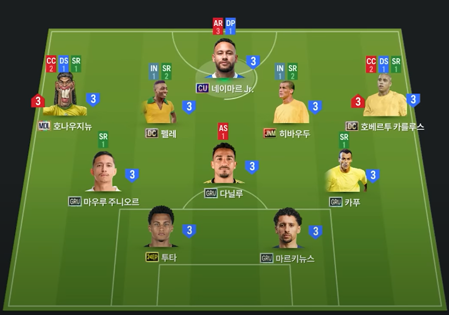 Đội hình Brazil trong game có hàng công tốc độ, hàng tiền vệ kỹ thuật và hậu vệ giàu thể lực, phù hợp với phong cách kiểm soát bóng và phản công nhanh. Những mùa thẻ mạnh với những cái tên chất lượng cũng giúp Brazil trở thành một trong những team color đáng sử dụng trong FC Online.