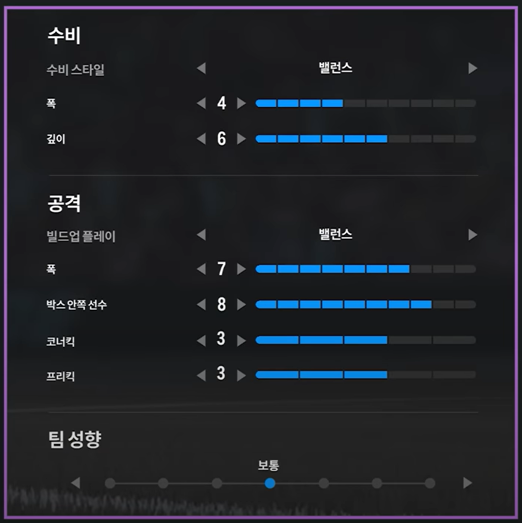 Ở chiến thuật đội, lối chơi phòng ngự cân bằng cùng xu hướng rộng 4 thấp 6 sẽ giúp kéo giãn đội hình vừa phải, dâng cự li lên đôi chút để tham gia đánh chặn trực tiếp đối phương ở khu vực giữa sân bởi 2 hậu vệ biên luôn được đặt ở trạng thái dâng cao.