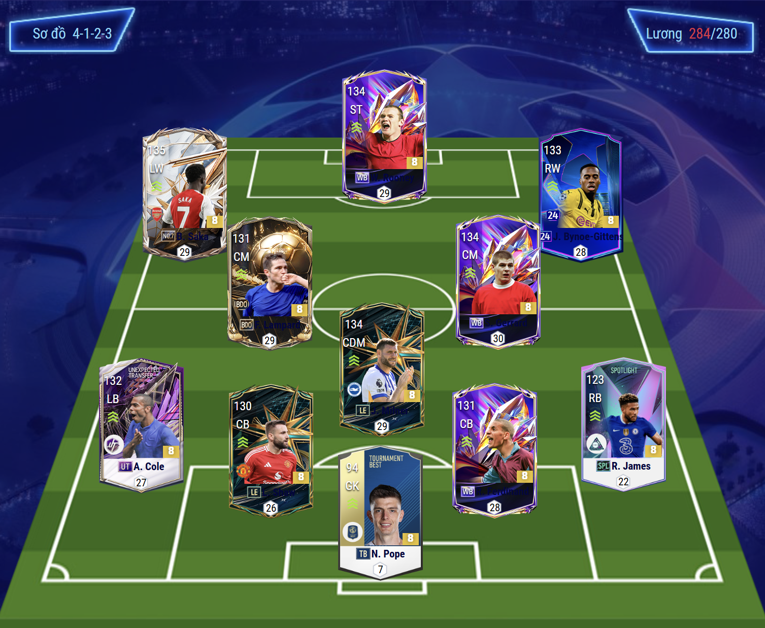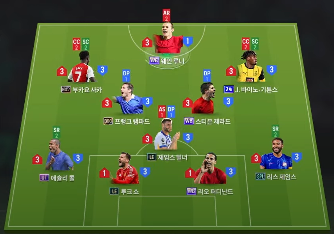 Sơ đồ 4123 được lựa chọn với vị trí chơi cao nhất trên hàng công là Rooney, một trong những tiền đạo toàn diện hàng đầu của ĐT Anh. Cặp tiền đạo cánh được lựa chọn là Saka và Bynoe-Gittens sở hữu tốc độ, AI xâm nhập tốt cùng khả năng chuyền tạt lẫn sút bóng đều rất hiệu quả.