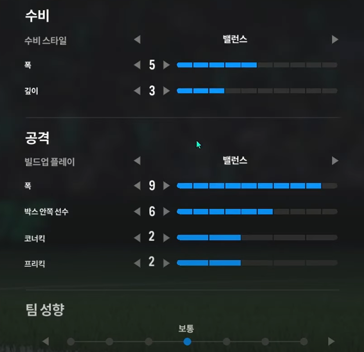 Trong khi, thiết lập tấn công "cân bằng" sẽ phù hợp cho lối chơi kiểm soát bóng, triển khai thế trận chậm, chắc ở tuyến giữa và ban bật với các vệ tinh trên hàng công để mở ra khoảng trống và ghi bàn. Ở lối chơi tấn công này, xu hướng triển khai sẽ là xu hướng chậm, chắc bóng và tìm kiếm cơ hội thay vì tấn công tổng lực và tốc độ cao.