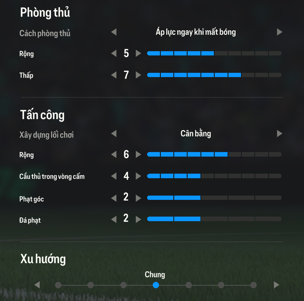 Lối chơi tấn công cân bằng sẽ giúp các vị trí tấn công ít dâng nhanh lên phần sân đối thủ, từ đó tạo một đội hình liên kết dày để thực hiện các tình huống ban bật tam giác nhằm mở ra nhiều khoảng trống tấn công và ghi bàn.