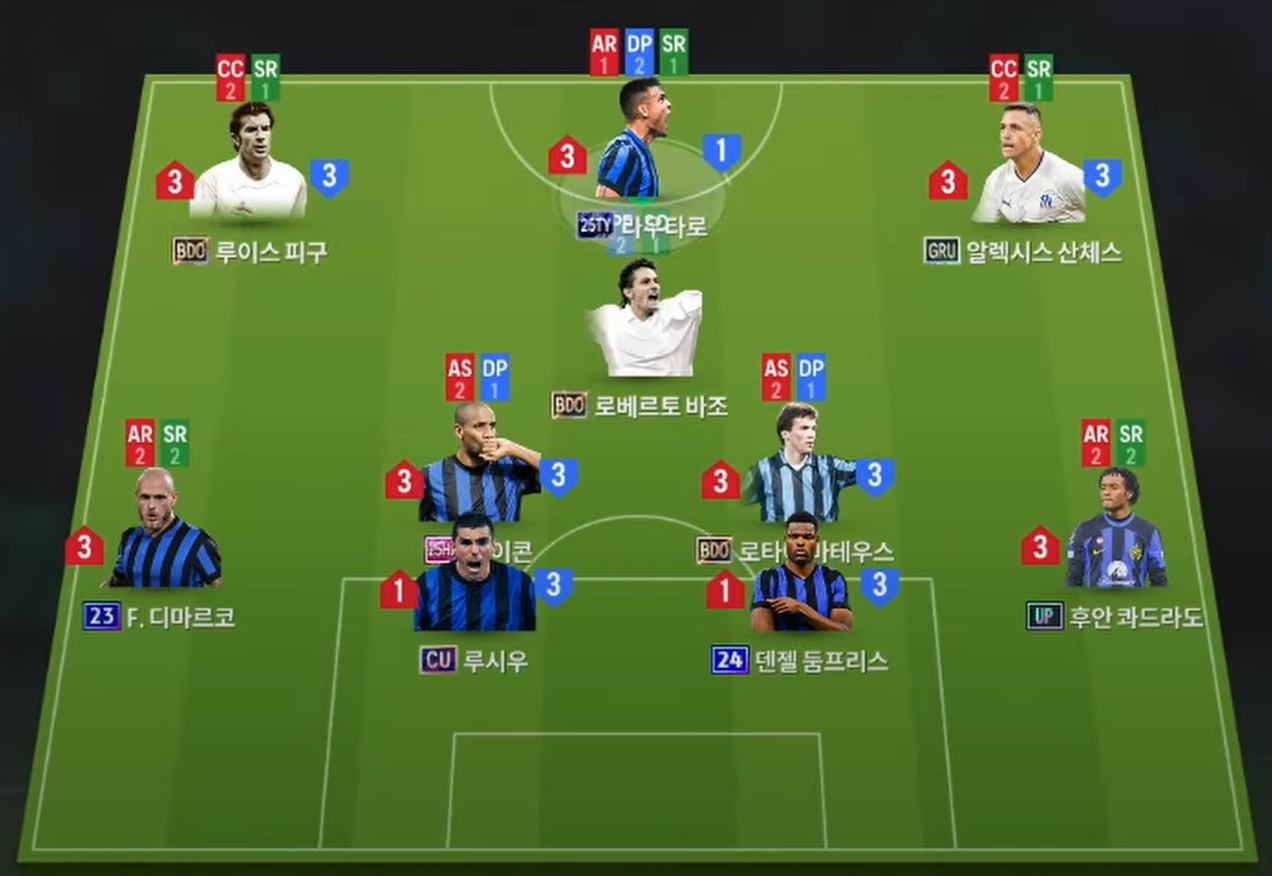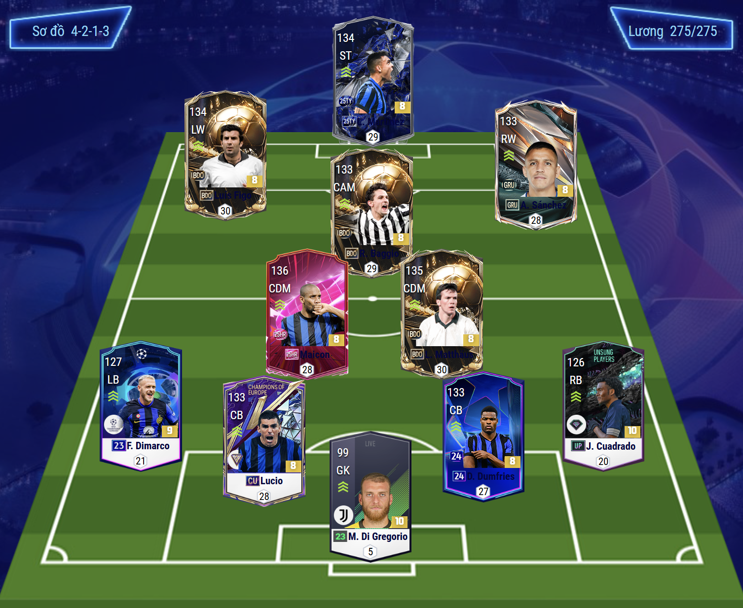 Sơ đồ 4213 với vị trí chơi cao nhất trên hàng công là tiền đạo cắm Lautaro Martinez. Tiền đạo cánh là 2 cái tên Figo và Sanchez, cả 2 sở hữu tốc độ tốt, khả năng chuyền sút ấn tượng cùng bộ kỹ năng rê dắt bóng hiệu quả.