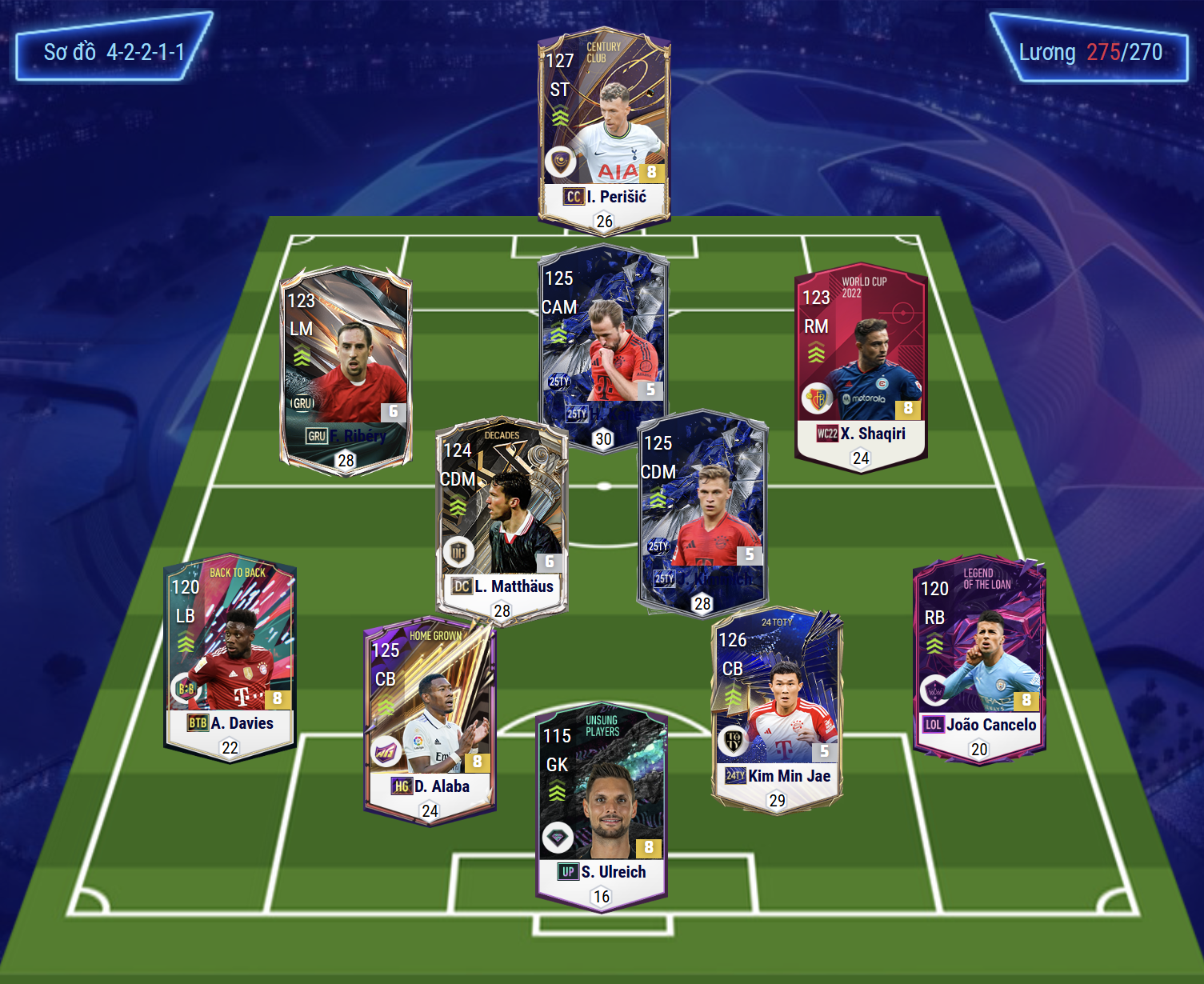 Team Color Bayern Munich trong FC Online là lựa chọn yêu thích của nhiều game thủ bởi sự toàn diện và chất lượng đội hình vượt trội. Với hàng loạt huyền thoại và ngôi sao đương đại như Gerd Muller, Lahm, Ribéry, Kimmich hay Musiala, team color này mang đến sự cân bằng hoàn hảo giữa công và thủ.