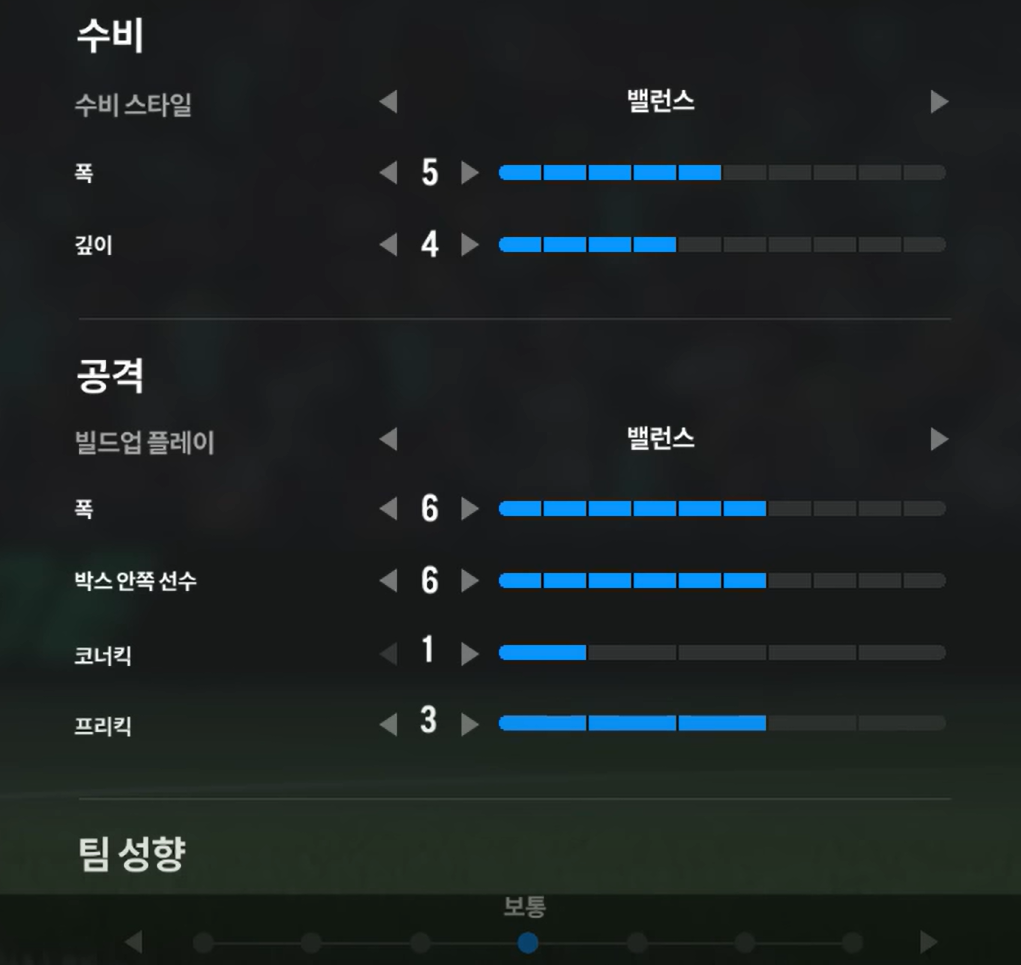 Trong khi đó, tấn công cân bằng sẽ là sự lựa chọn phù hợp nhất cho lối chơi xây dựng chậm, triển khai bóng từ khu vực giữa sân, ban bật nhiều và dâng chậm nhằm đảm bảo cự li đội hình ổn định để luôn có những góc ban bật tam giác liên tục tránh bị đối phương bắt bài cũng như đánh chặn. Từ đó, tận dụng khả năng di chuyển của các cầu thủ để mở ra khoảng trống ghi bàn.