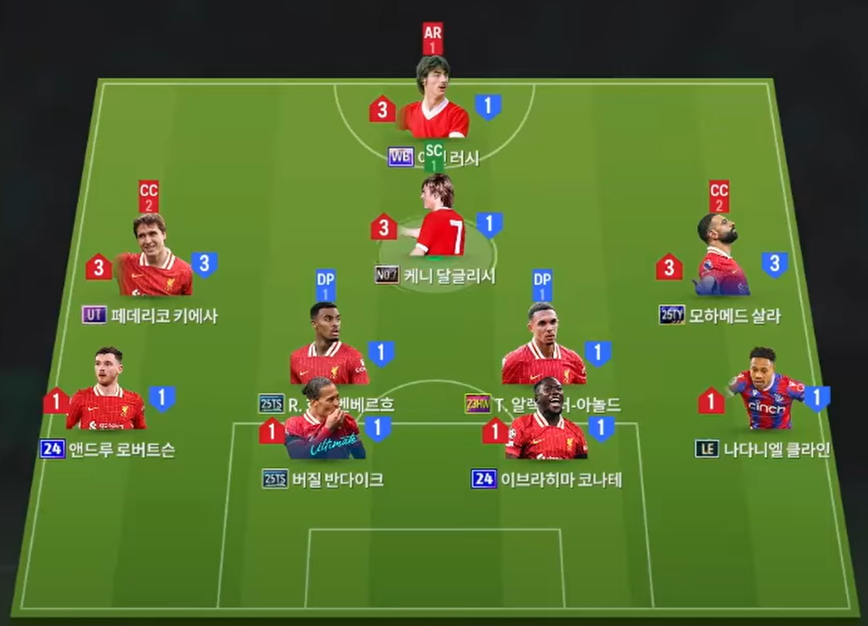 Sơ đồ 42211 được lựa chọn với vị trí tiền đạo cắm là Ian Rush, một trong những mẫu cầu thủ sở hữu tốc độ, khả năng dứt điểm chính xác và ấn tượng. Hỗ trợ phía sau là Dalglish, một trong những tiền vệ có thể thi đấu hộ công biến tấu đa dạng, chuyền bóng lẫn sút bóng đều hiệu quả. Cặp tiền vệ cánh Chiesa và Salah sở hữu tốc độ, khả năng xâm nhập biên ấn tượng cùng kỹ năng chuyền tạt lẫn sút bóng đều hiệu quả.