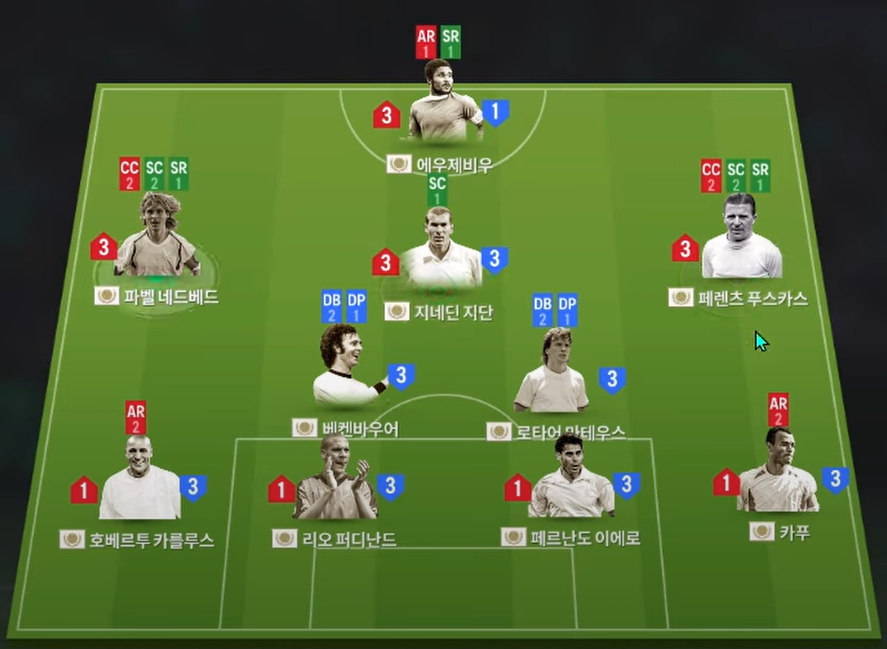 Sơ đồ 42211 với vị trí tiền đạo cắm được lựa chọn là Eusebio, một trong những cầu thủ cực kì nhanh nhẹn và toàn diện trên hàng công. Hỗ trợ phía sau là Zidane, cầu thủ người Pháp sở hữu khả năng chuyền bóng, sút xa cho đến rê dắt cực kì ấn tượng. Bộ đôi tiền vệ cánh với Nedved và Puskas vừa sở hữu tốc độ tốt vừa cho thấy khả năng chuyền tạt cực kì ổn.