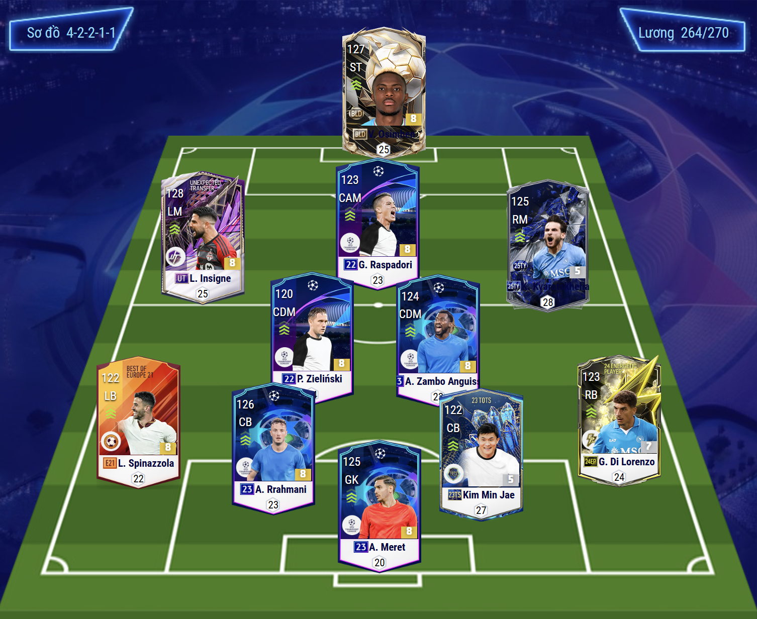 Tại FC Online Hàn, cũng có những team color Napoli cực kì chất lượng, đem lại hiệu quả leo rank ấn tượng với tỉ lệ thắng ổn định mà các HLV có thể tham khảo. Trong đó sơ đồ 42211 vẫn được xem là dạng sơ đồ dễ tiếp cận người dùng.