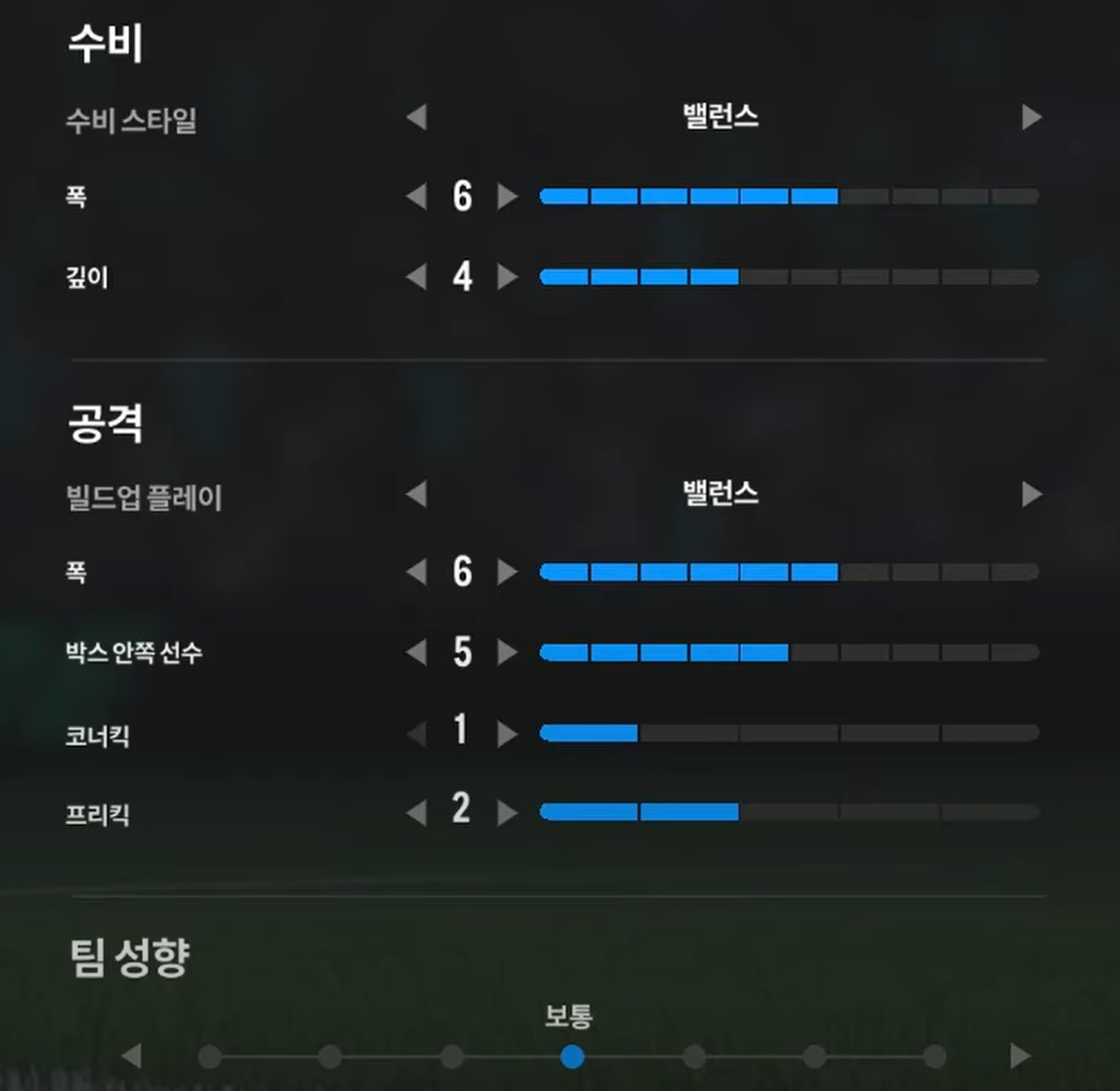 Trong khi, thiết lập tấn công "cân bằng" sẽ phù hợp cho lối chơi kiểm soát bóng, triển khai thế trận chậm, chắc ở tuyến giữa và ban bật với các vệ tinh trên hàng công để mở ra khoảng trống và ghi bàn. Ở lối chơi tấn công này, xu hướng triển khai sẽ là xu hướng chậm, chắc bóng và tìm kiếm cơ hội thay vì tấn công tổng lực và tốc độ cao.