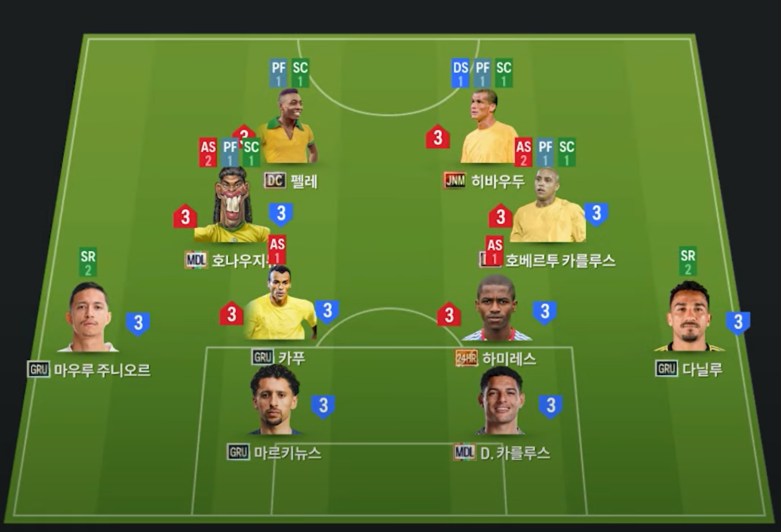 Trong đó, tại server Hàn có một game thủ được xem là fan cứng của Ronaldinho và anh luôn xây dựng những chiến thuật thú vị và hiệu quả xoay quanh chàng cầu thủ này. Một trong những sơ đồ có thể kể đến đang tạo ra hiệu quả ấn tượng ở thời điểm hiện tại là sơ đồ 4222 không tiền đạo.