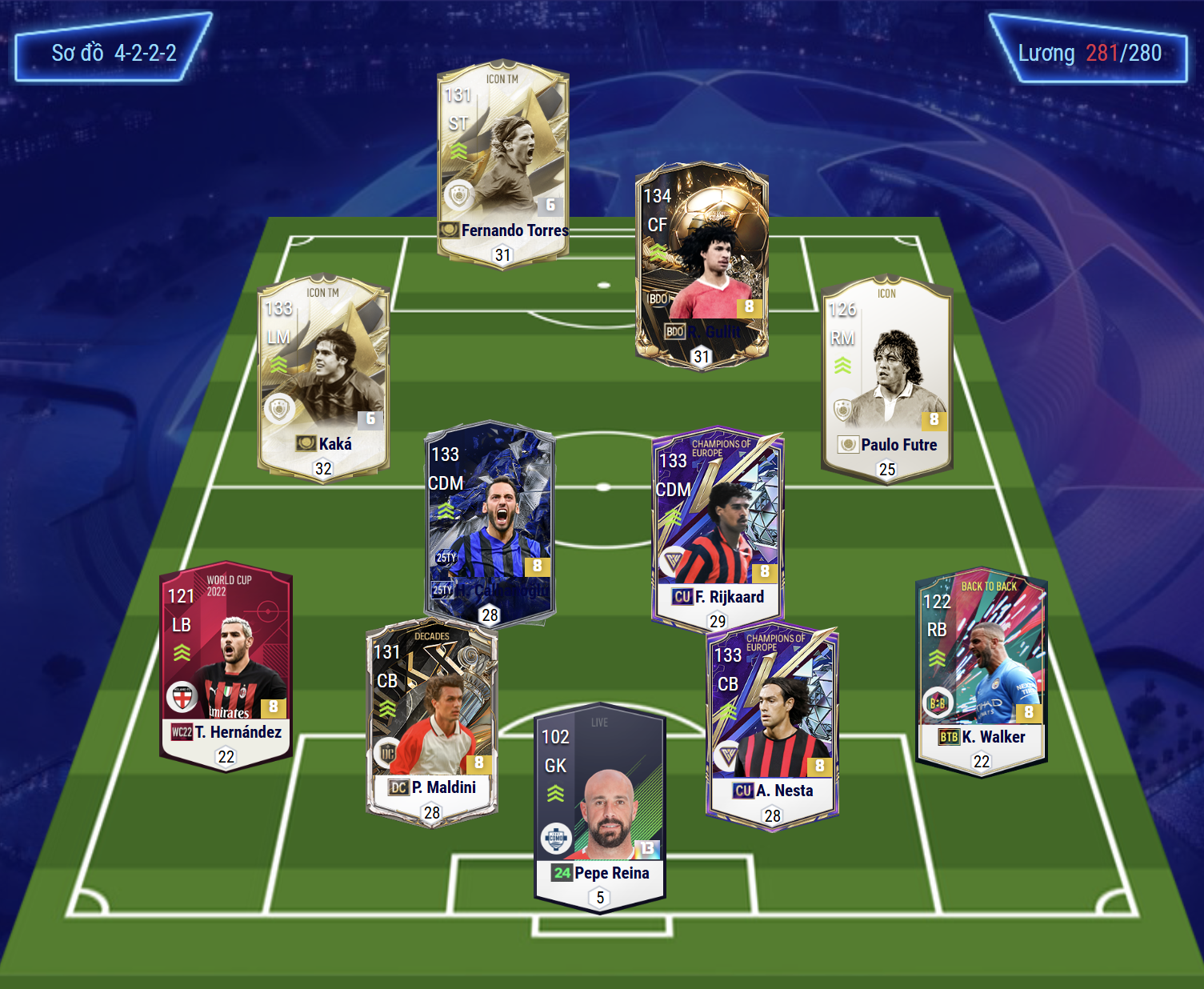 Bộ tứ vệ với Theo Hernandez và Walker thi đấu ở 2 bên hành lang cánh từ tốc độ tốt, khả năng phòng ngự lẫn hỗ trợ tấn công hiệu quả. Cặp trung vệ Nesta và Maldini đều là những cái tên có AI phòng ngự khôn, khả năng tranh chấp và tắc bóng chính xác được tin dùng để là lá chắn thép trước khung thành của Pepe Reina.