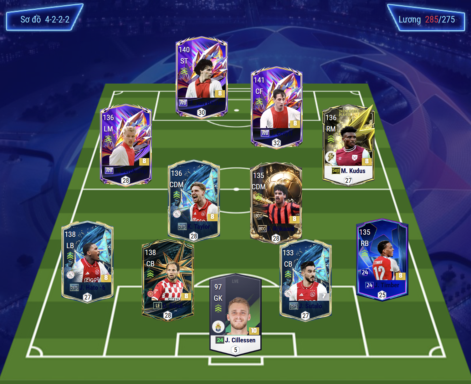 Hôm nay, hãy cùng tìm hiểu về một team color Ajax đang có hiệu suất leo rank ấn tượng ở meta 11 với sơ đồ 4222 LS/RF. Đây là một sơ đồ đáng để các HLV tham khảo và áp dụng vào lối chơi của đội.