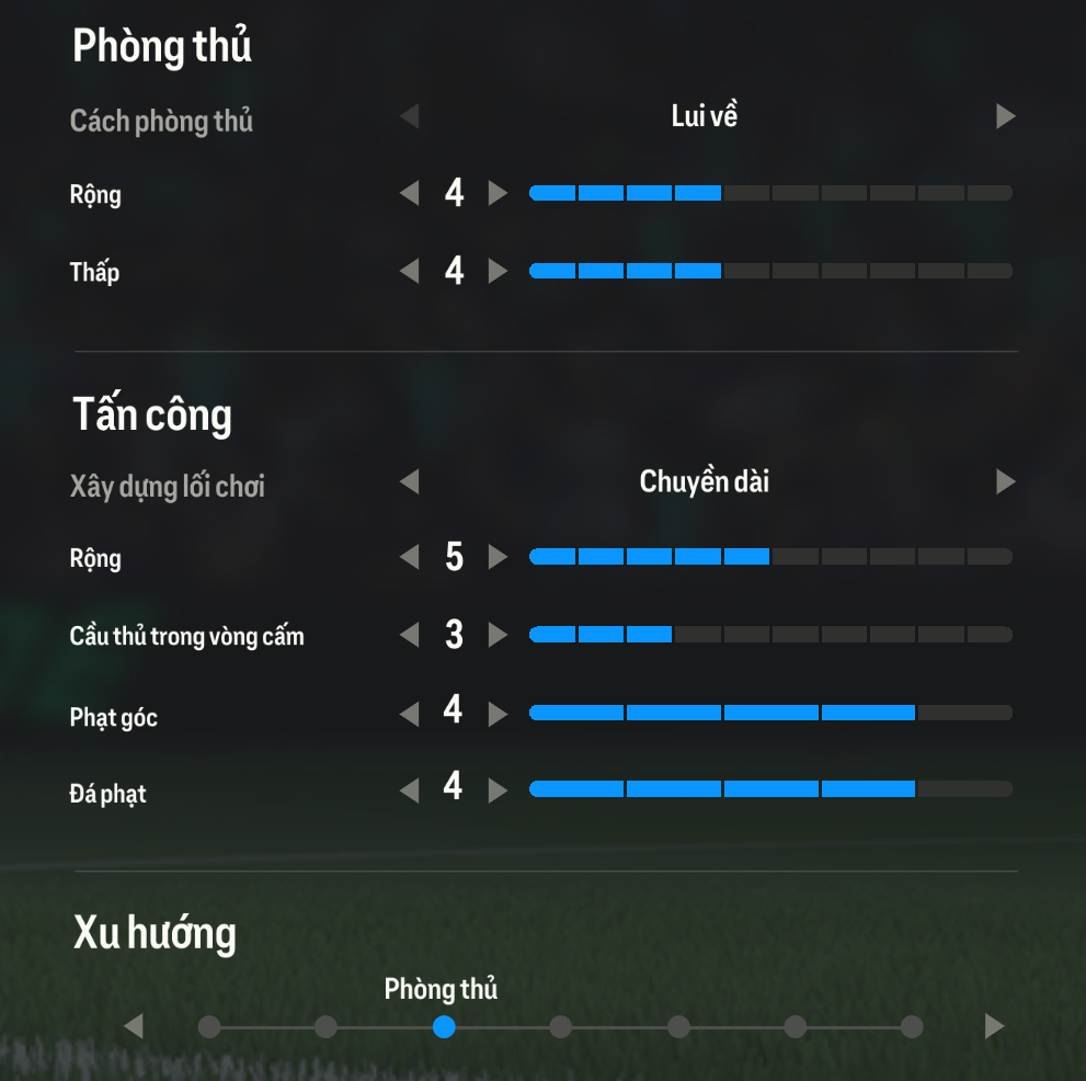 Tấn công đường chuyền dài sẽ là thiết lập khá ổn nhằm tận dụng khả năng chuyền bóng của tuyến giữa cùng với đó là khả năng dâng lên của các vị trí tiền đạo cũng sẽ được tối ưu cho các tình huống tấn công cũng như phản công.