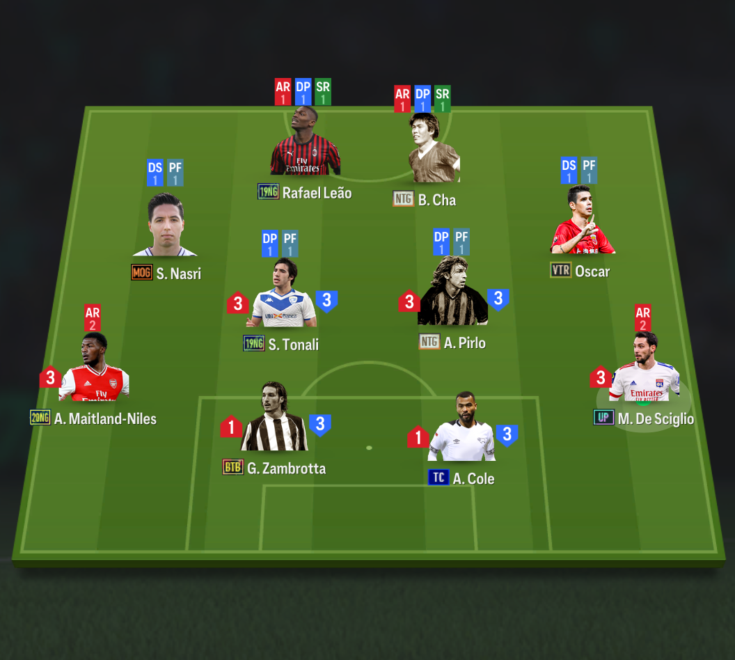 Chiến thuật cá nhân của từng cầu thủ được sắp xếp như hình với 2 vị trí quan trọng nhất là 2 tiền vệ trung tâm có xu hướng 3-3 và nguồn thể lực dồi dào để có thể áp dụng một cách tối đa khả năng phòng ngự lẫn tham gia tấn công linh hoạt.