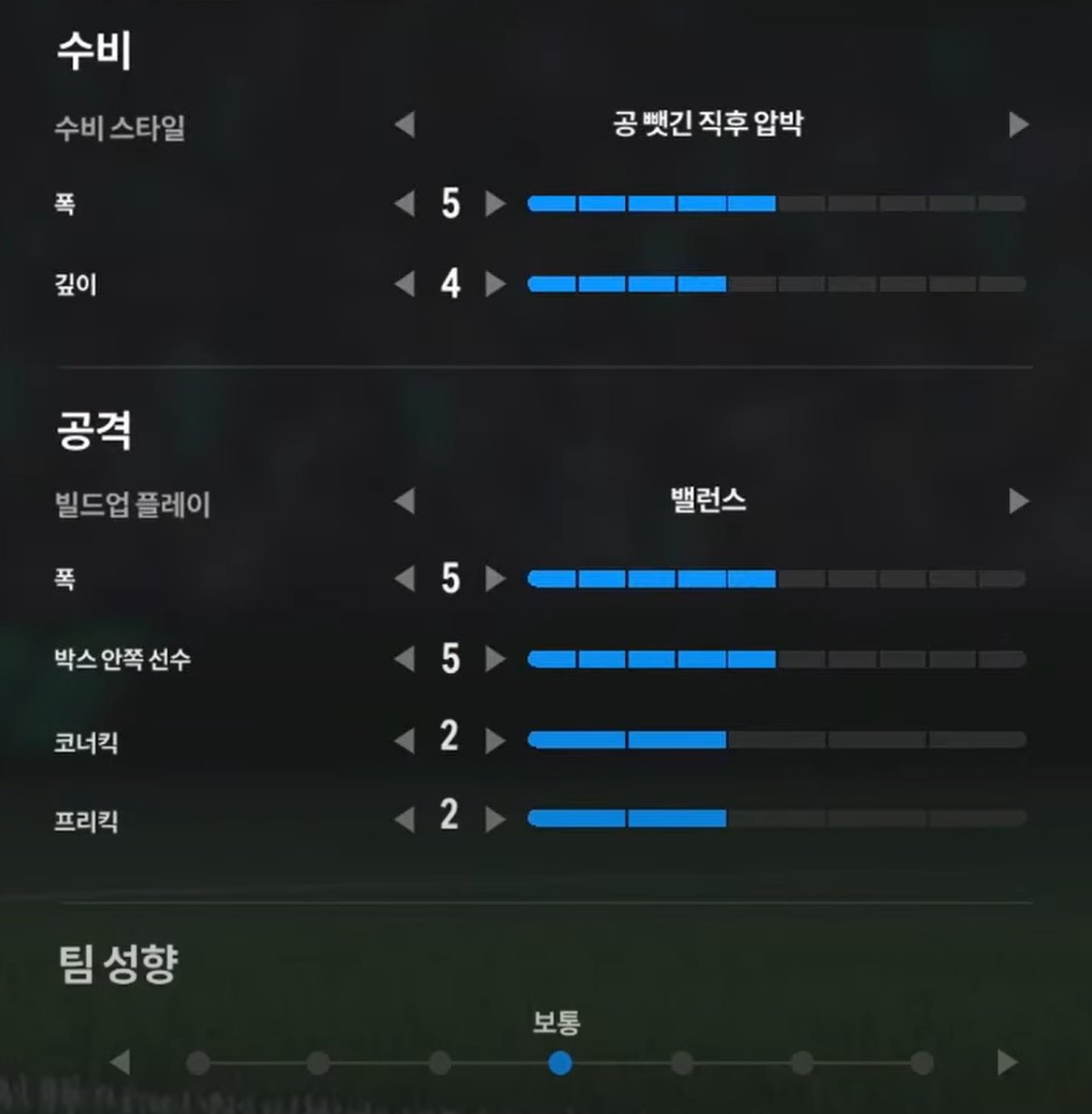 Trong khi, thiết lập tấn công "cân bằng" sẽ phù hợp cho lối chơi kiểm soát bóng, triển khai thế trận chậm, chắc ở tuyến giữa và ban bật với các vệ tinh trên hàng công để mở ra khoảng trống và ghi bàn. Ở lối chơi tấn công này, xu hướng triển khai sẽ là xu hướng chậm, chắc bóng và tìm kiếm cơ hội thay vì tấn công tổng lực và tốc độ cao.