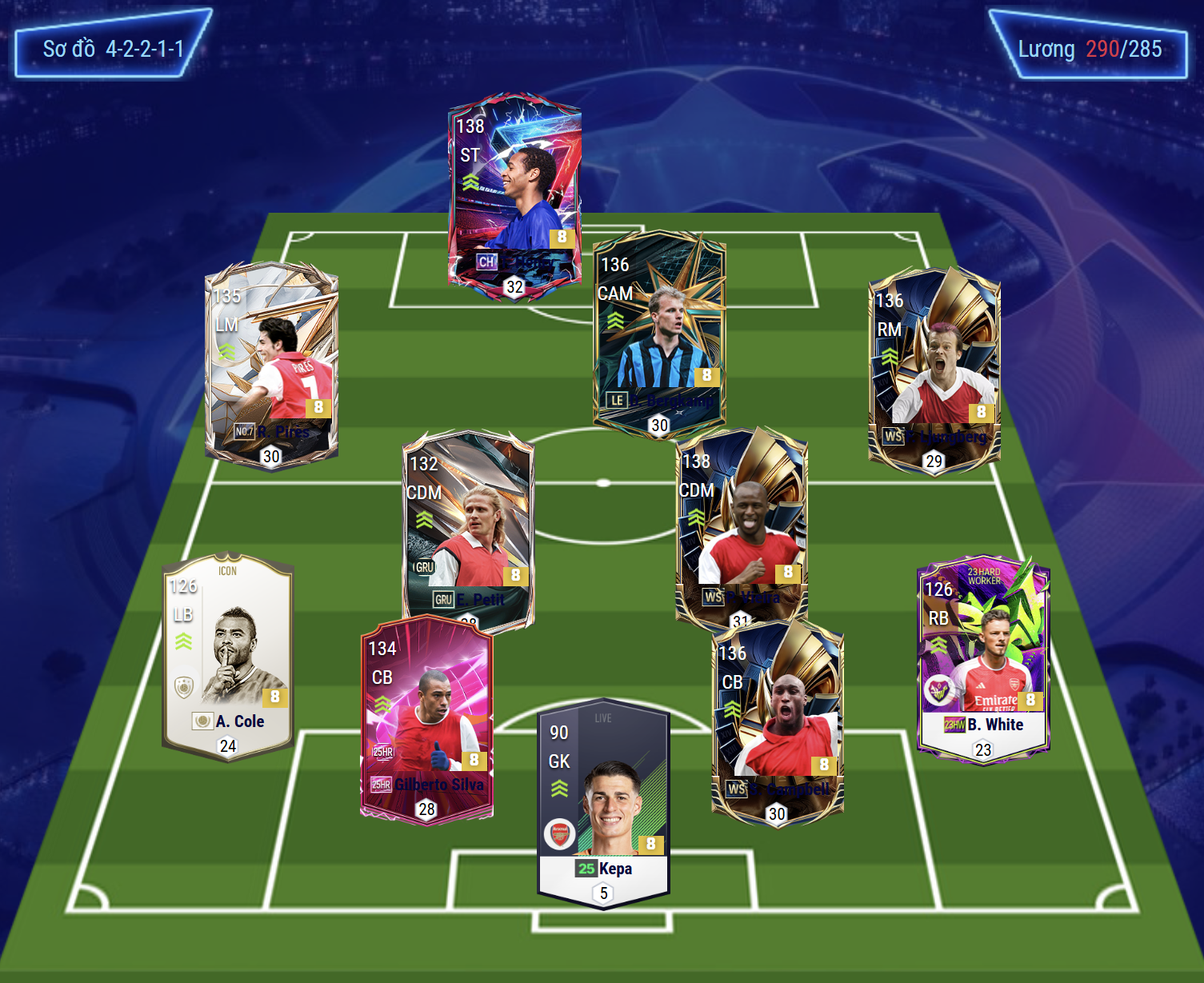Bộ tứ vệ với J. Cole và B. White là 2 chân hậu vệ biên cực kì chất lượng cho Arsenal thời điểm hiện tại từ tốc độ, khả năng tham gia phòng ngự hiệu quả cho tới hỗ trợ tấn công ấn tượng. Cặp trung vệ Gilberto Silva và Campbell là 2 cái tên đảm bảo chất thép trong các pha phòng ngự trung lộ với AI cắt bóng tốt, thể hình to đầm, kỹ năng không chiến ổn định. Thủ môn Kepa là cái tên được tin dùng trong khung gỗ.
