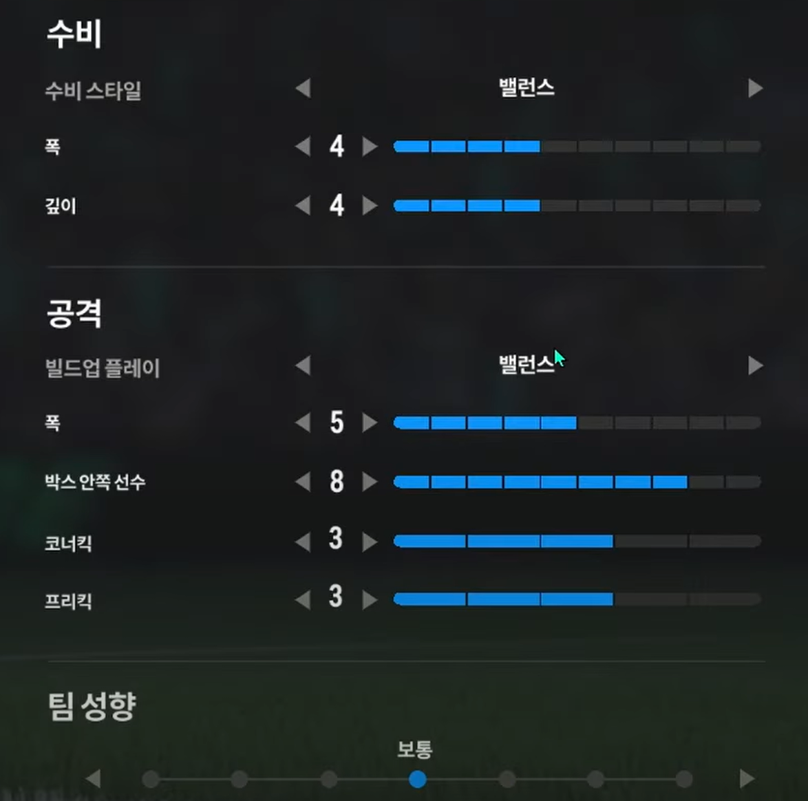 Trong khi, thiết lập tấn công "cân bằng" sẽ phù hợp cho lối chơi kiểm soát bóng, triển khai thế trận chậm, chắc ở tuyến giữa và ban bật với các vệ tinh trên hàng công để mở ra khoảng trống và ghi bàn. Ở lối chơi tấn công này, xu hướng triển khai sẽ là xu hướng chậm, chắc bóng và tìm kiếm cơ hội thay vì tấn công tổng lực và tốc độ cao.