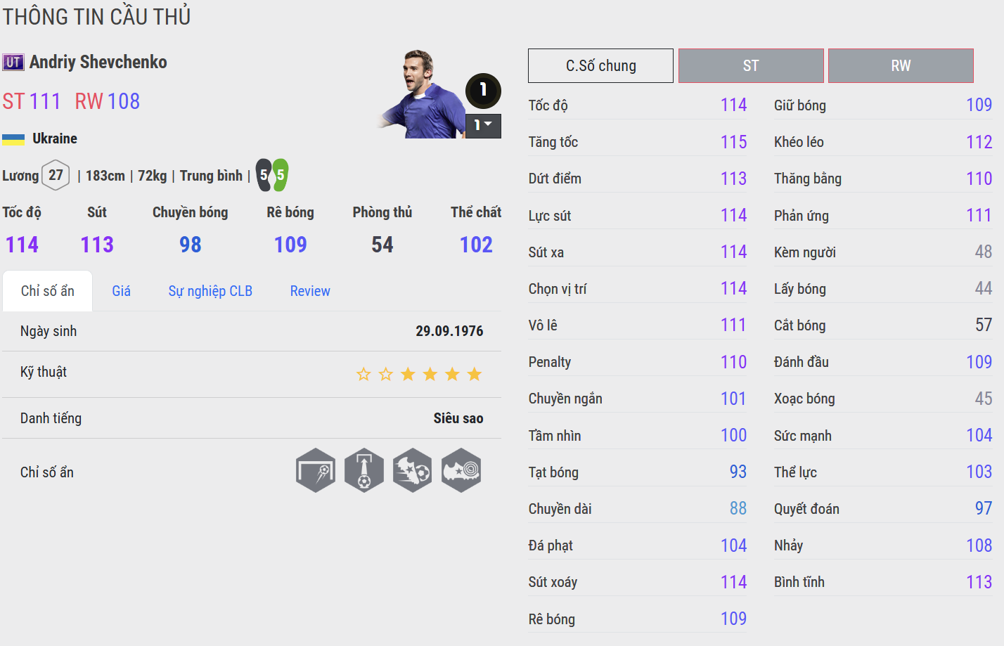 Trong FC Online, Shevchenko được đánh giá rất cao khi là mẫu tiền đạo toàn diện, đem lại hiệu quả thi đấu ấn tượng trong FC Online. Không những vậy, việc sở hữu hai team color hàng đầu là Chelsea và AC Milan cũng giúp Sheva được tin dùng nhiều hơn.
