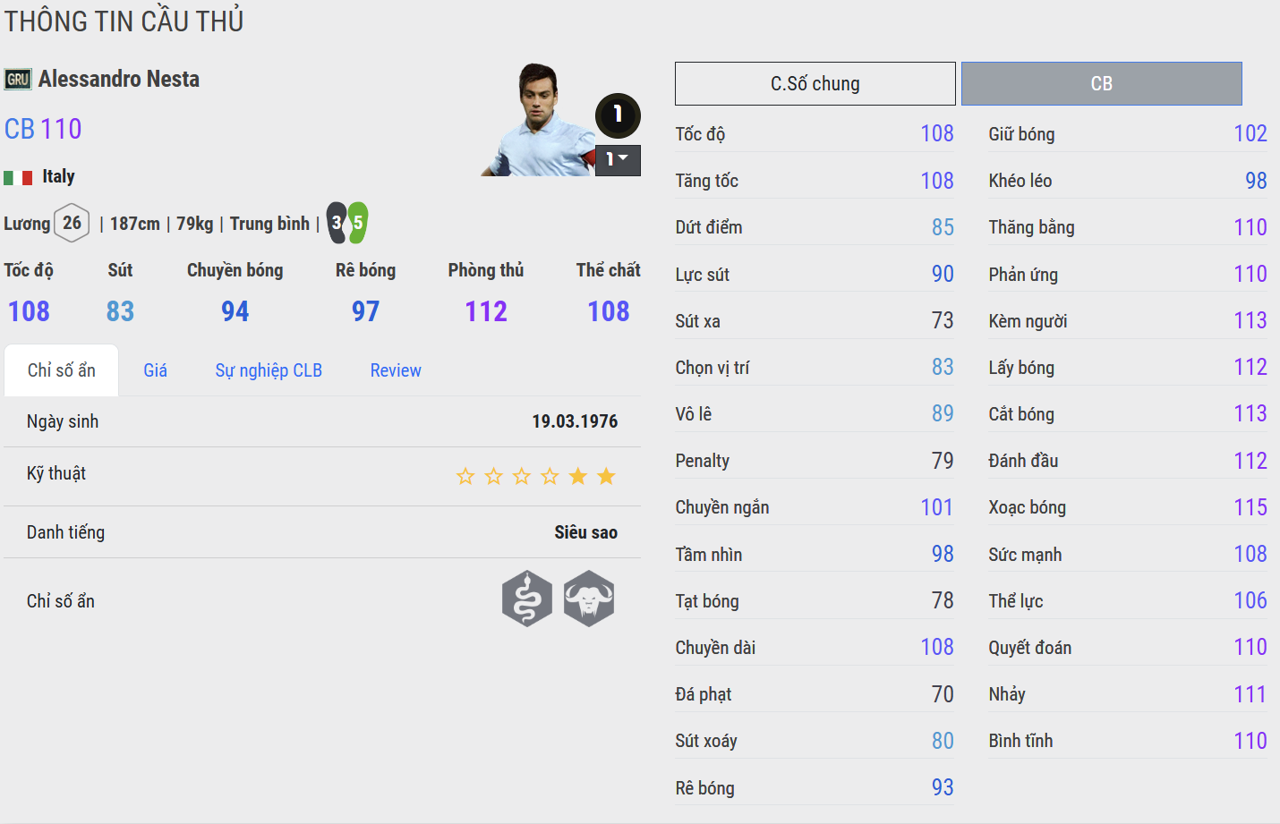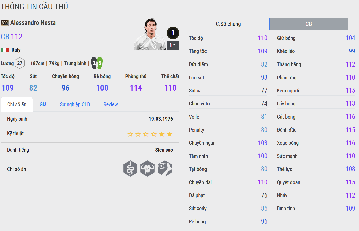 Sinh ra tại Rome, trưởng thành trong màu áo Lazio và vươn đến đỉnh cao cùng AC Milan, Nesta là hiện thân hoàn hảo của trường phái phòng ngự kiểu Ý – điềm tĩnh, thông minh và đậm chất kỹ thuật.