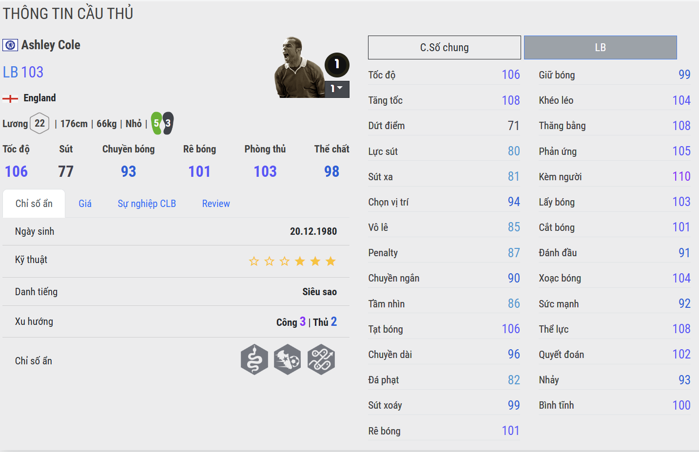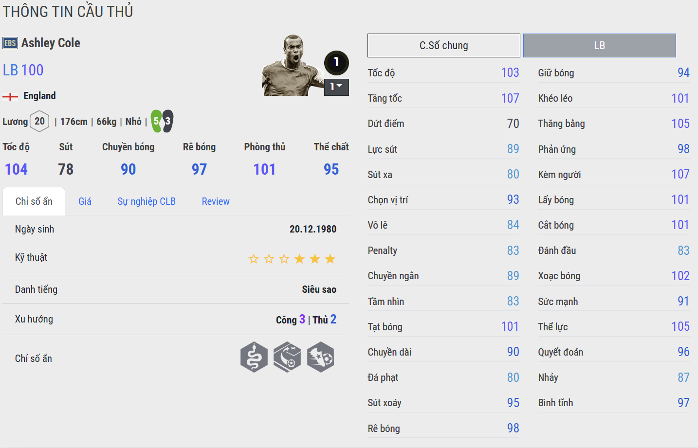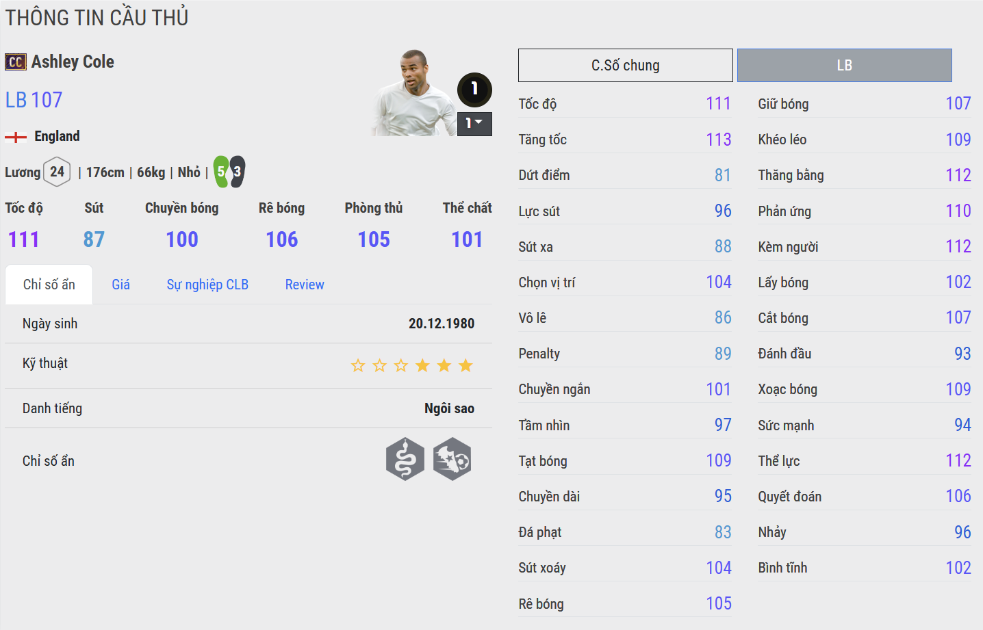 Ashley Cole là một trong những hậu vệ cánh trái xuất sắc nhất lịch sử bóng đá Anh. Nổi bật với tốc độ, khả năng đọc tình huống và kỹ năng phòng ngự 1vs1 xuất sắc, anh từng là trụ cột không thể thay thế tại Arsenal và Chelsea.