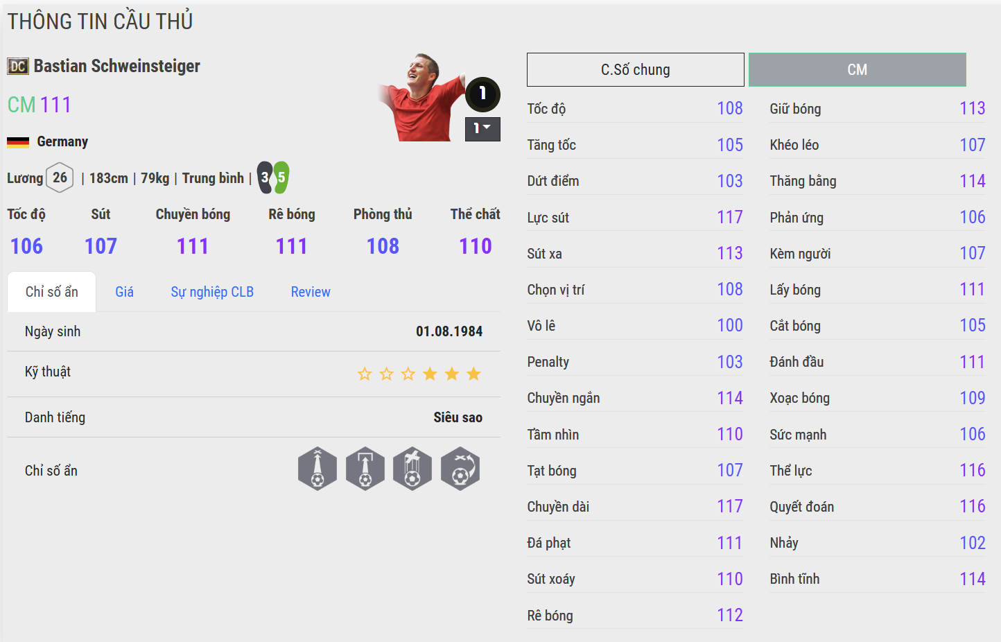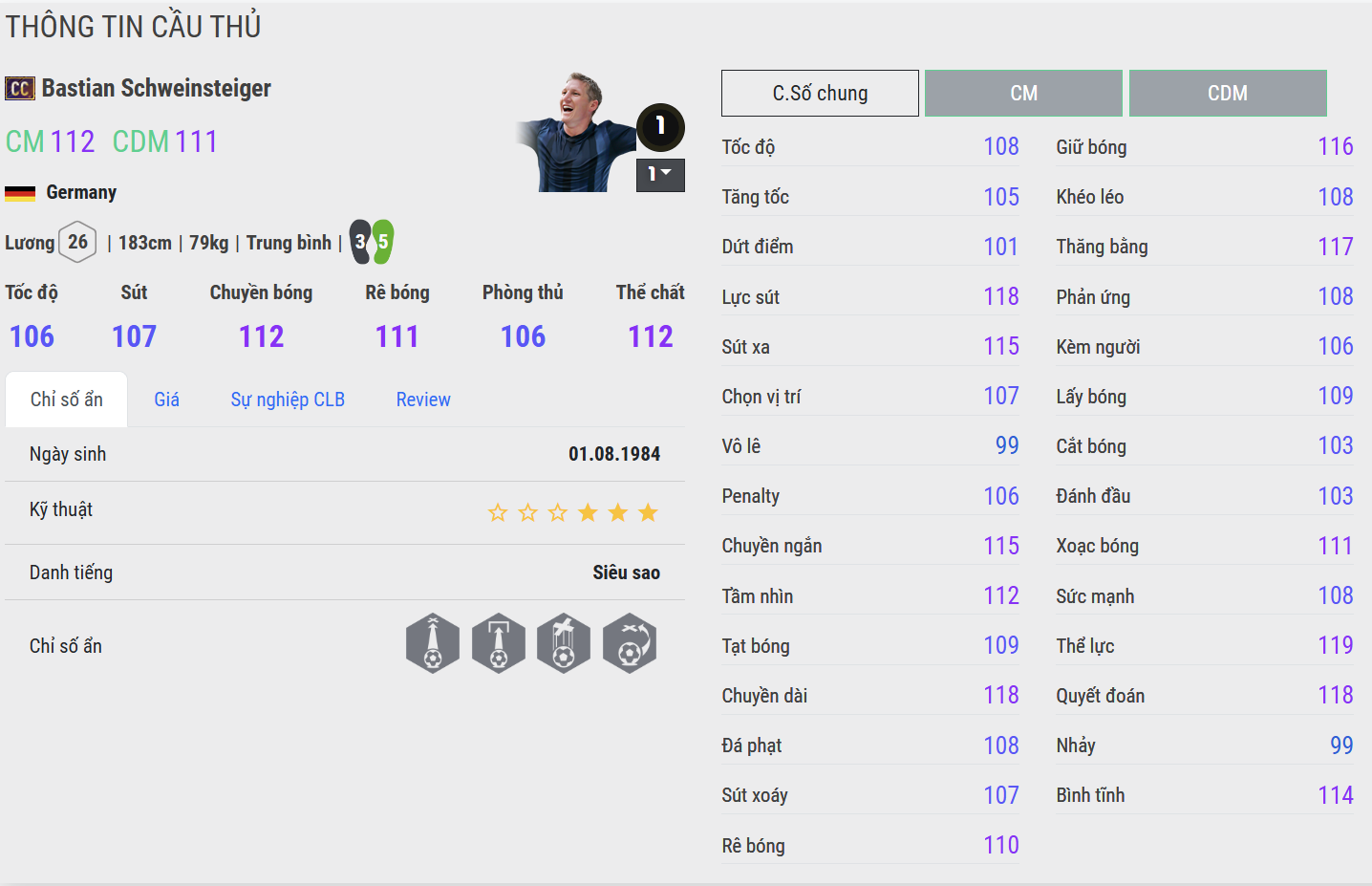 Bastian Schweinsteiger là biểu tượng của bản lĩnh, sự bền bỉ và trí tuệ chiến thuật – một trong những tiền vệ toàn diện nhất mà bóng đá Đức từng sản sinh. Anh khởi đầu sự nghiệp như một cầu thủ chạy cánh, nhưng chính quãng thời gian lùi vào trung tâm mới khiến Schweinsteiger bộc lộ trọn vẹn phẩm chất của mình: mạnh mẽ trong tranh chấp, thông minh trong điều tiết nhịp độ và cực kỳ chính xác ở các đường chuyền dài mở biên.