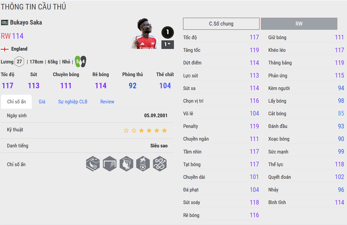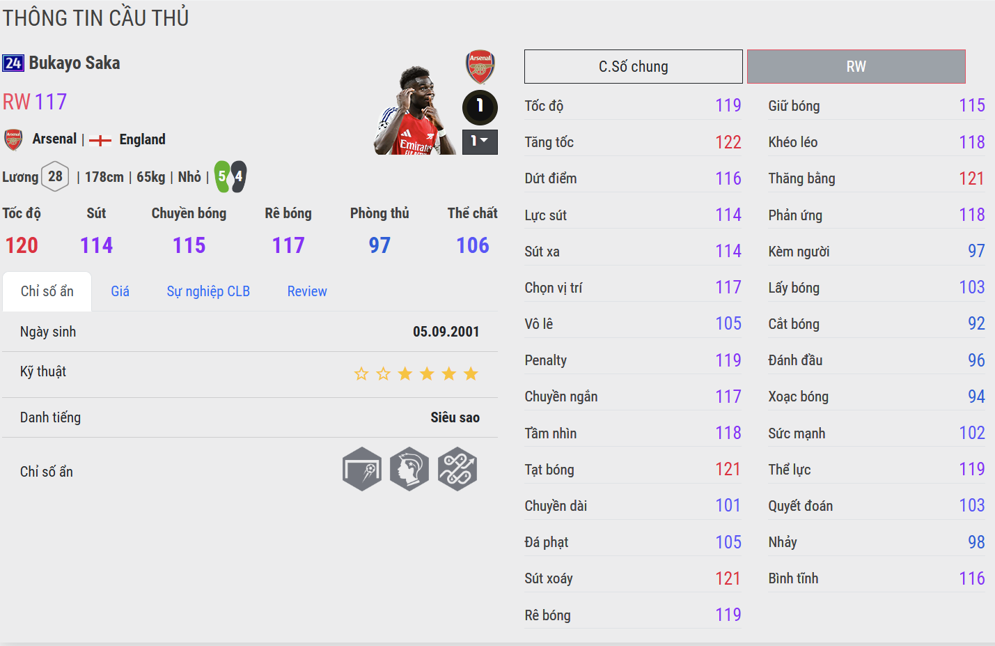 Nổi bật nhất ở vị trí chạy cánh phải, anh không chỉ sở hữu những pha đi bóng lắt léo và khả năng tạo đột biến, mà còn ghi dấu với sự bình tĩnh, hiệu quả trong dứt điểm và kiến tạo. Trong màu áo Arsenal, Saka trở thành trụ cột không thể thay thế, góp phần đưa “Pháo thủ” trở lại cuộc đua vô địch Premier League.