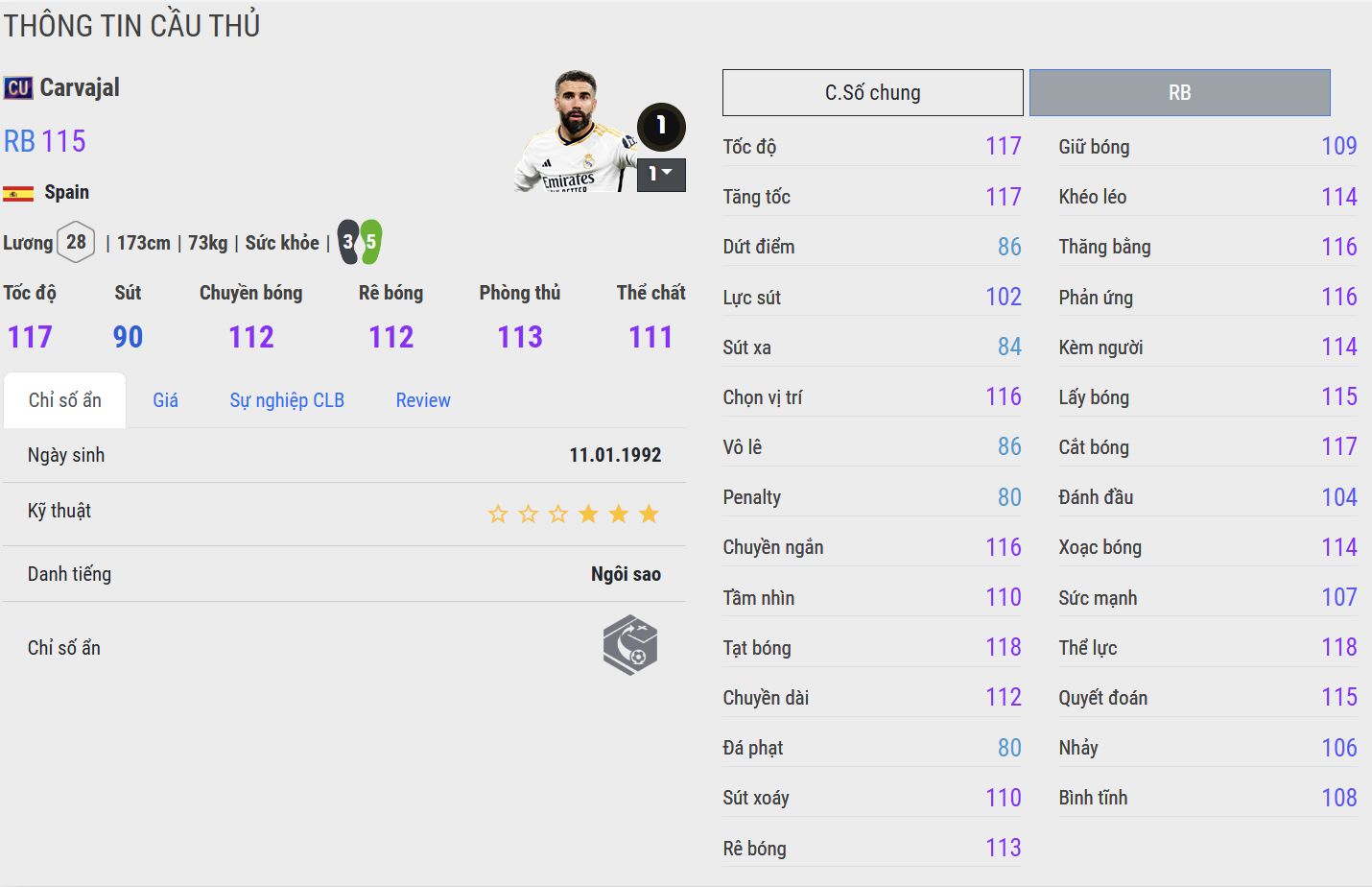 Sinh ra và trưởng thành từ chính lò đào tạo La Fábrica, Carvajal mang trong mình DNA của Real Madrid. Dù từng phải rời đội bóng để tích lũy kinh nghiệm ở Đức, anh nhanh chóng trở lại và chiếm lấy vị trí chính thức, trở thành hậu vệ phải số một của CLB. Tốc độ ổn định, khả năng đeo bám dai dẳng cùng tư duy phòng ngự hiện đại giúp Carvajal không chỉ vững chắc nơi tuyến dưới mà còn tạo ra những pha leo biên đầy hiệu quả trong khâu tấn công.