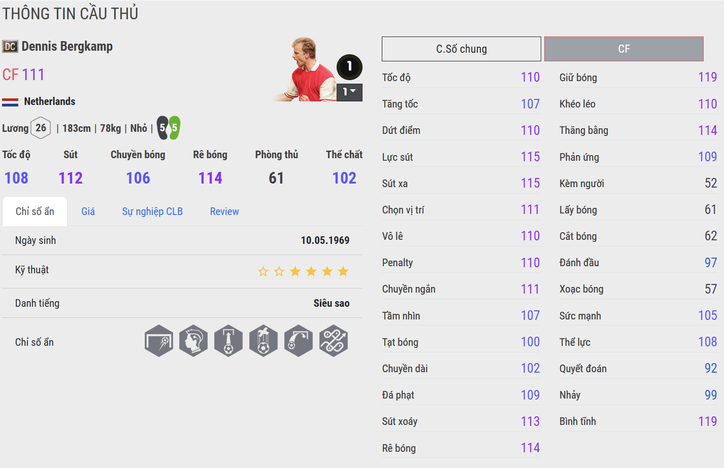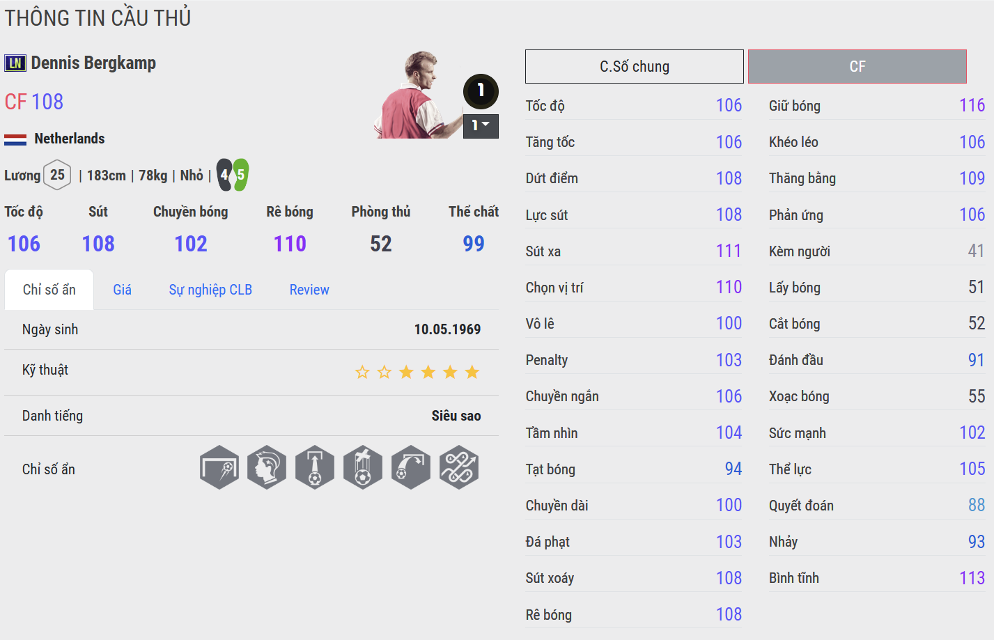Top 5 mùa giải tốt nhất của Dennis Bergkamp trong FC Online :