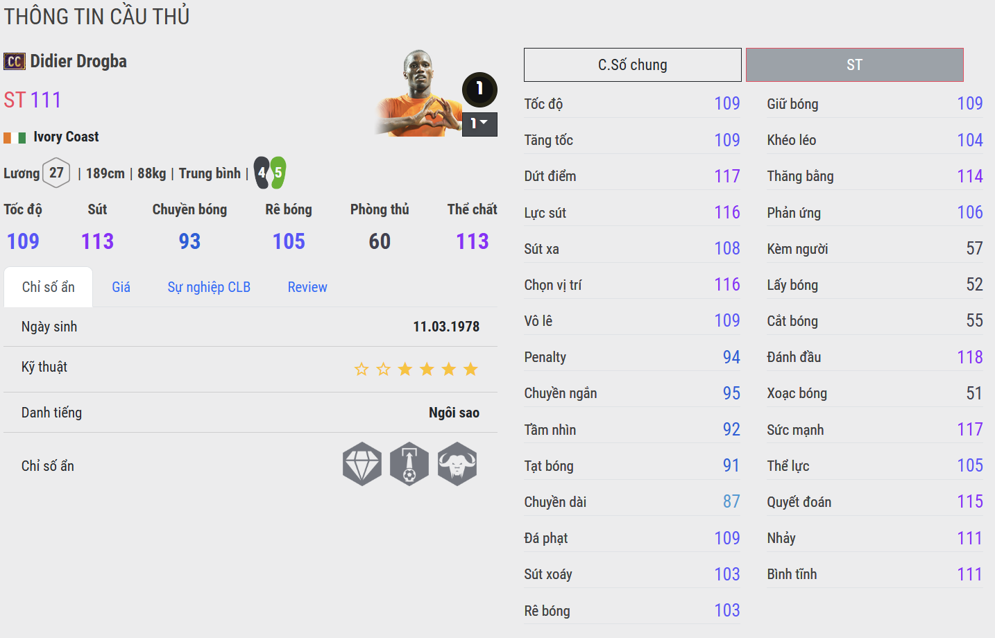 Didier Drogba – huyền thoại bóng đá Bờ Biển Ngà và biểu tượng bất diệt của Chelsea. Anh được biết đến như một trong những tiền đạo toàn diện và đáng sợ nhất thế giới ở giai đoạn hoàng kim.