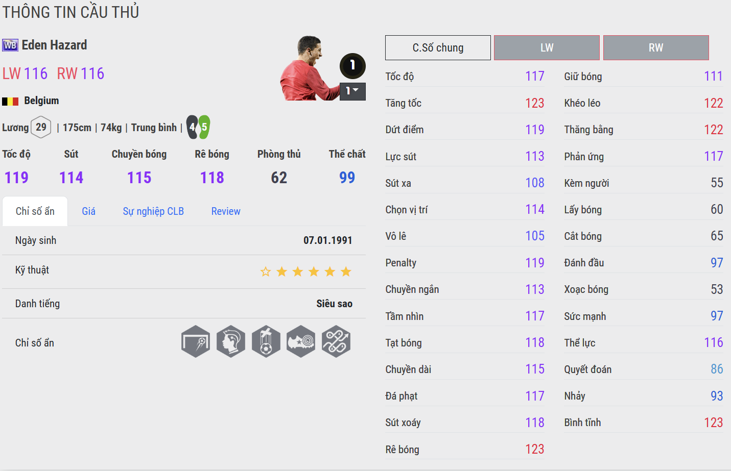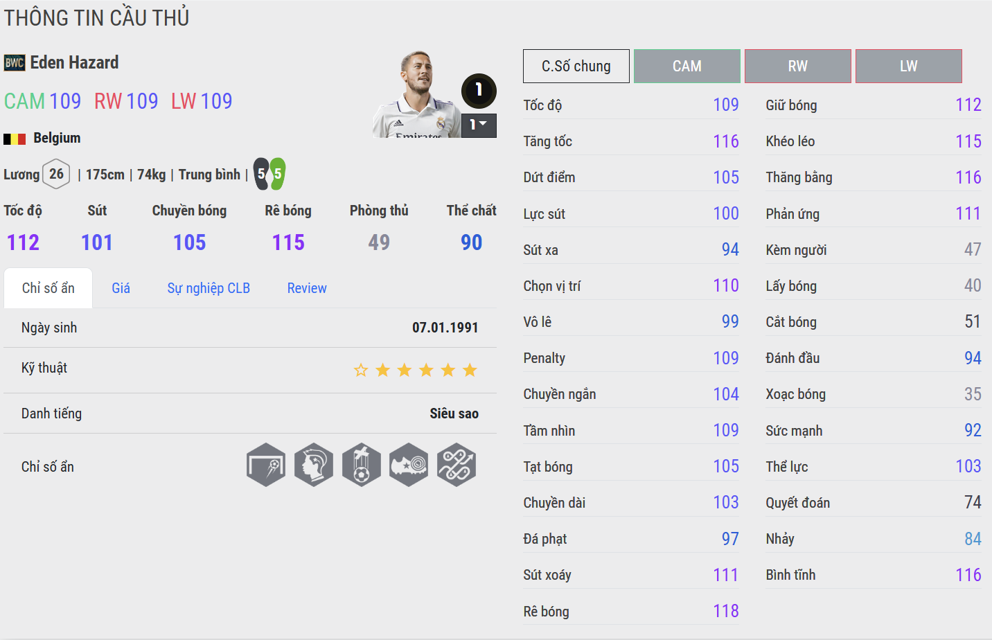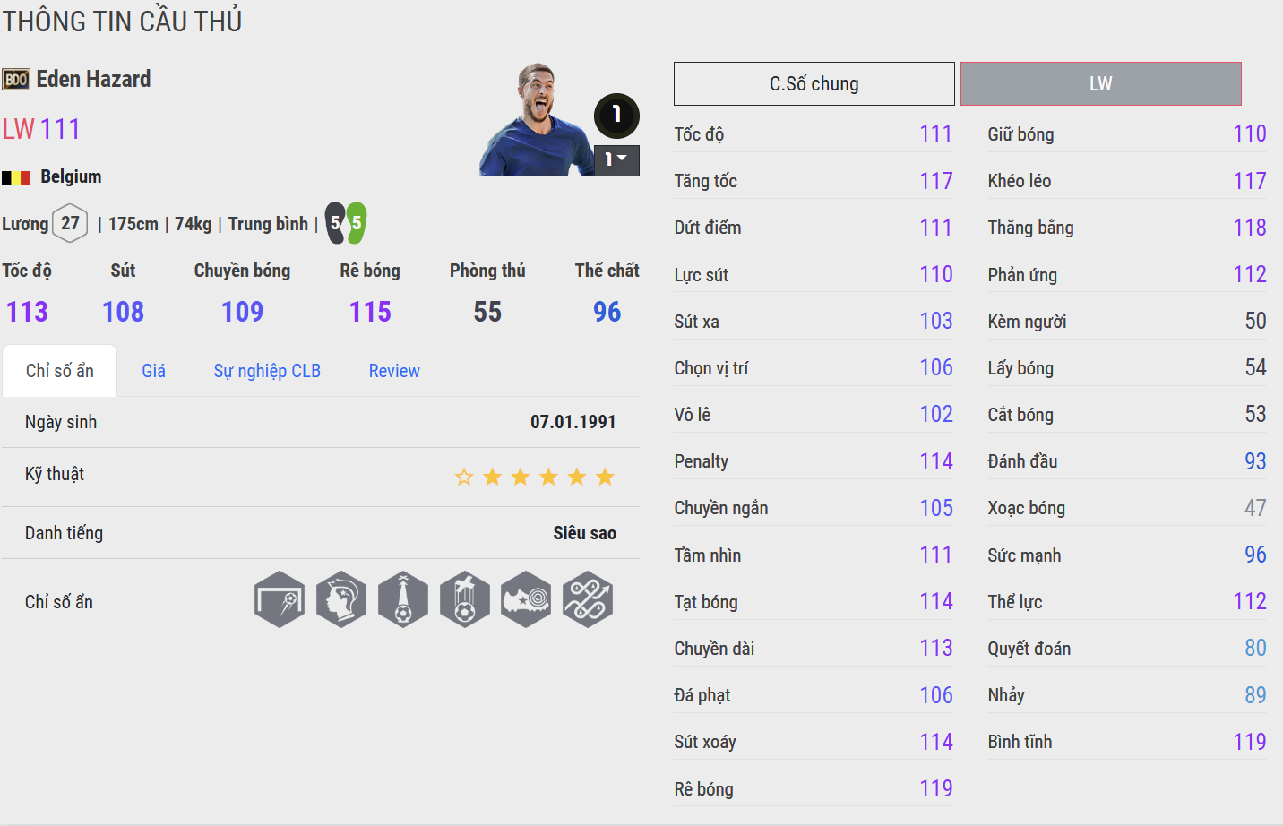 Eden Hazard là một trong những cầu thủ tấn công xuất sắc nhất thế hệ của mình, mang trong mình sự kết hợp hiếm có giữa kỹ thuật, tốc độ và khả năng tạo đột biến. Trưởng thành từ lò đào tạo Lille tại Pháp, Hazard nhanh chóng khẳng định tên tuổi nhờ những pha đi bóng lắt léo và cảm giác chơi bóng đầy tự nhiên.