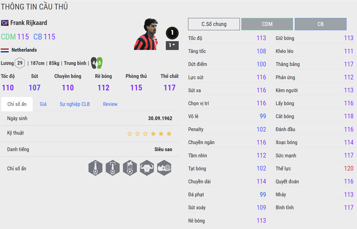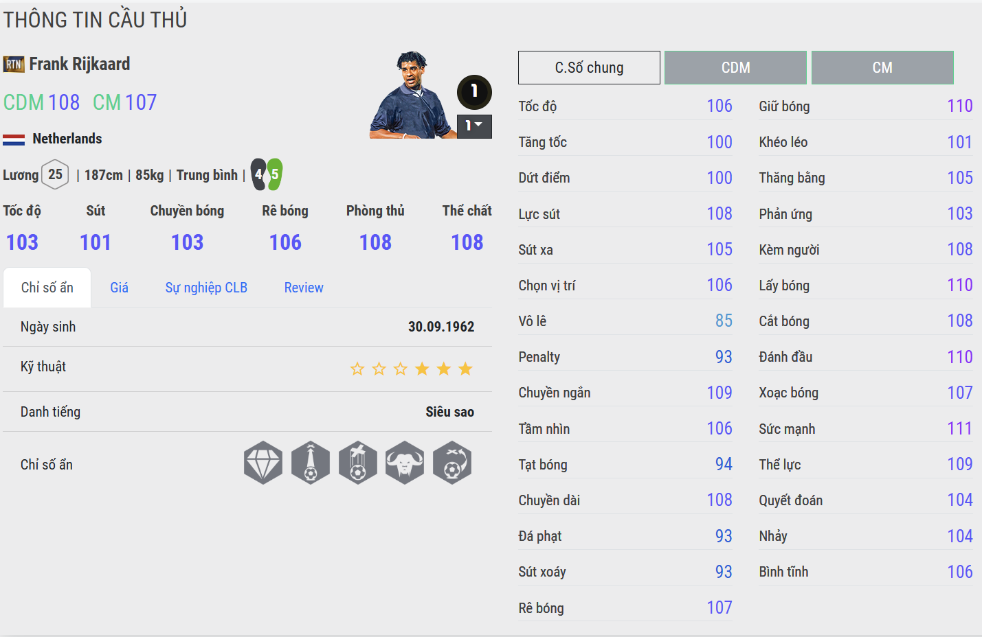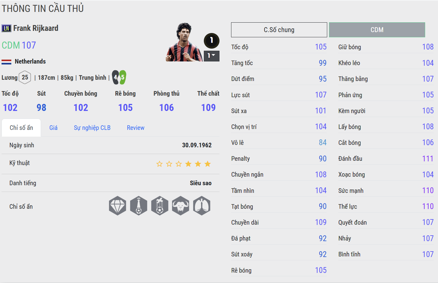Frank Rijkaard là một trong những biểu tượng vĩ đại của bóng đá Hà Lan, nổi bật với sự đa năng và tinh thần điềm tĩnh hiếm thấy. Là trụ cột trong đội hình AC Milan lừng danh những năm cuối thập niên 80, Rijkaard kết hợp hoàn hảo giữa thể chất mạnh mẽ, tư duy chiến thuật sắc bén và khả năng phân phối bóng chuẩn xác.
