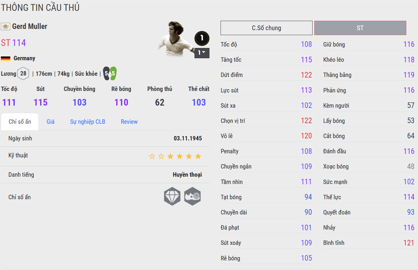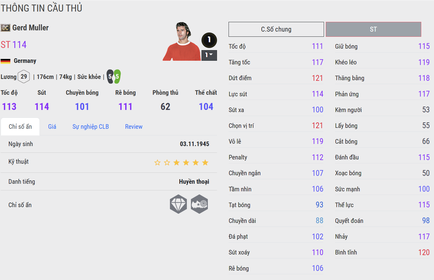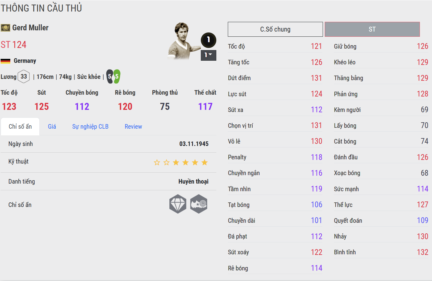 Gerd Müller là một trong những tiền đạo vĩ đại nhất lịch sử bóng đá, nổi tiếng với khả năng săn bàn thượng hạng, chọn vị trí xuất sắc và dứt điểm cực kỳ hiệu quả. Ông là huyền thoại của Bayern Munich và Đội tuyển Đức, ghi hơn 700 bàn thắng trong sự nghiệp, góp công lớn giúp Đức vô địch World Cup 1974 và Euro 1972.