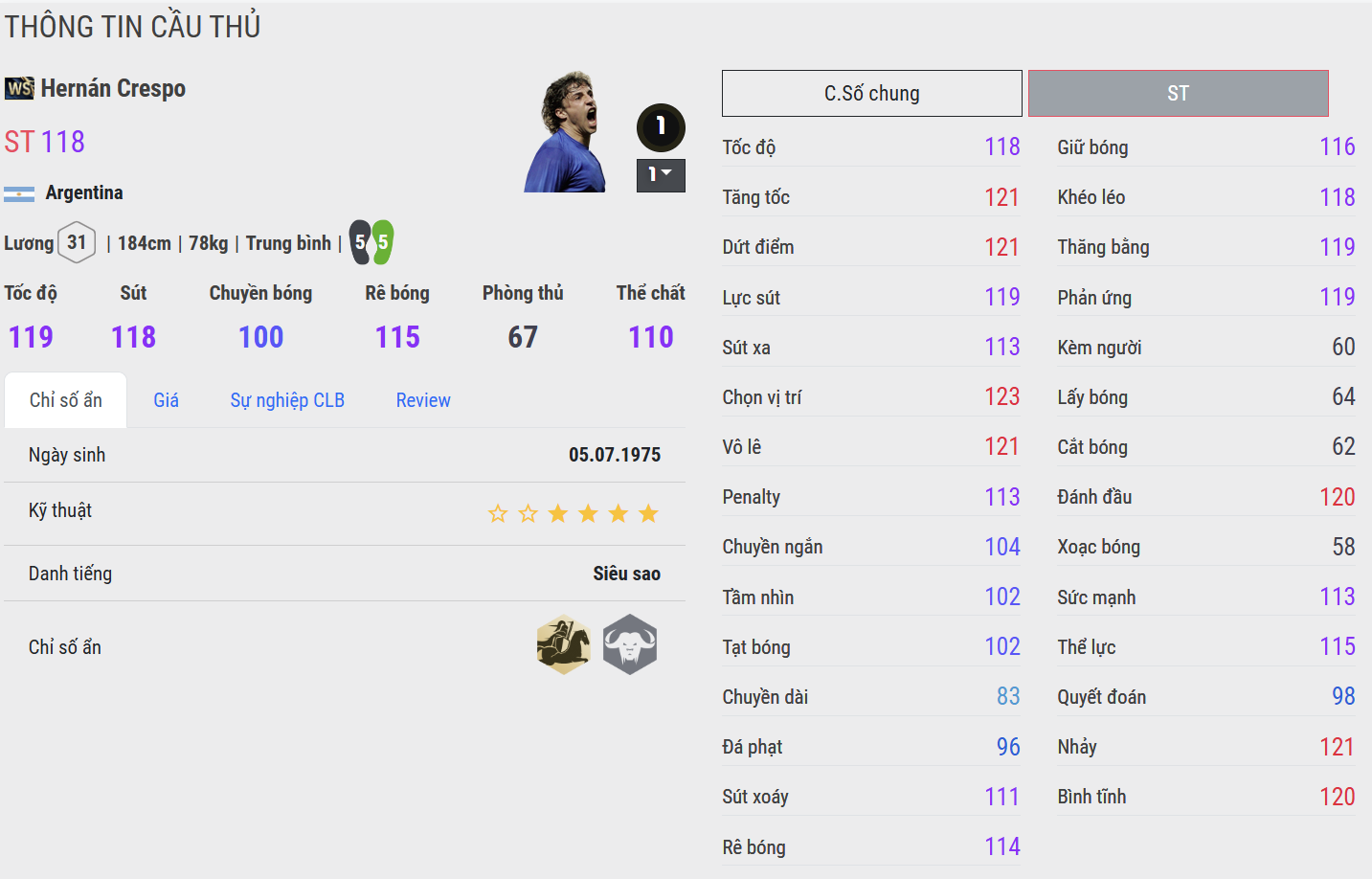 Trong FC Online, Crespo là lựa chọn lý tưởng cho những HLV yêu thích mẫu trung phong cổ điển – người biết tận dụng từng cơ hội, mang lại sự ổn định và sắc bén ở tuyến đầu hàng công.