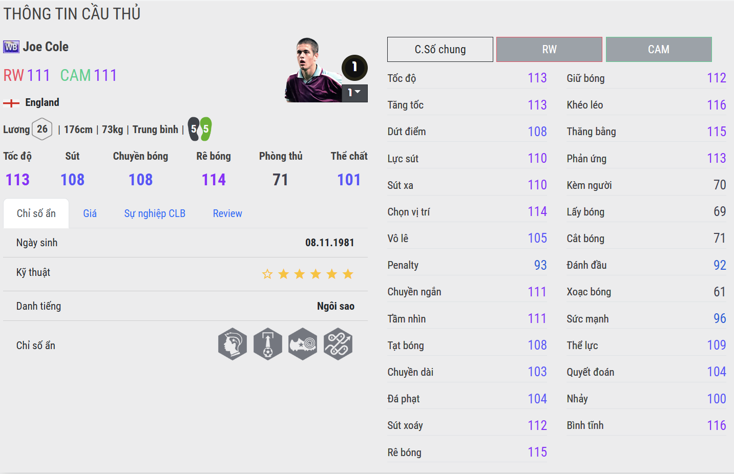 Joe Cole là biểu tượng của một thế hệ cầu thủ Anh mang đậm chất kỹ thuật hiếm thấy. Sở hữu lối chơi ngẫu hứng, mềm mại và đậm chất nghệ sĩ, Cole từng được kỳ vọng là “Gaza mới” – người sẽ thổi luồng sinh khí sáng tạo vào một nền bóng đá thường thiên về sức mạnh và tốc độ.