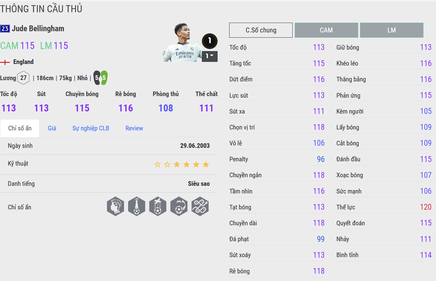 Mùa thẻ 23UCL là một mùa thẻ khá nổi bật của Bellingham với bộ chỉ số cao, tuy nhiên AI lại đang có phần hơi đuối thời điểm hiện tại. Dù mặt bằng chung vẫn là rất tốt nhưng để đánh giá về tính ổn định và khả năng thể hiện trong game thì rõ ràng vẫn chưa đủ để thỏa mán các HLV ở mức rank cao.