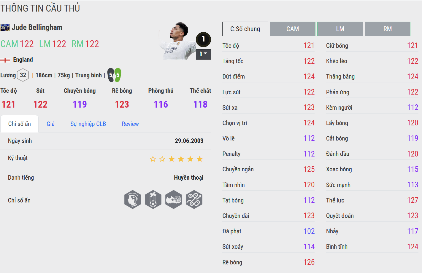 Dù được buff lên AI huyền thoại, nhưng nếu đánh giá trong game thì mùa thẻ 25TY của Bellingham vẫn còn thiếu đi đôi chút điểm nhấn vể khả năng chuyền bóng. Những đường chuyền từ chân Bellingham 25TY thiếu đi độ ảo để tạo đột biến, tuy nhiên sự toàn diện trong lối chơi khiến mùa 25TY vẫn được đánh giá cực cao về giá trị đầu tư.