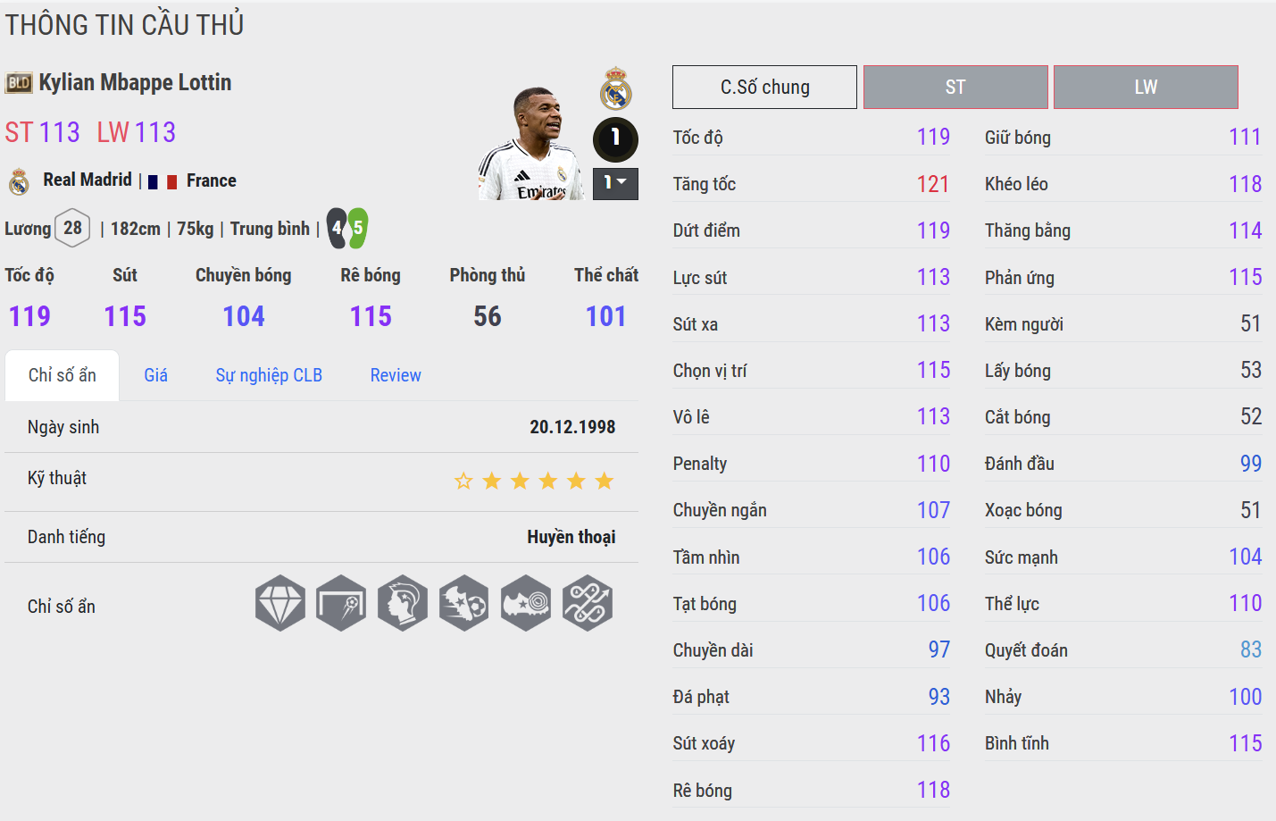Sở hữu tốc độ bùng nổ, kỹ thuật cá nhân siêu hạng và khả năng dứt điểm sắc bén, ngôi sao người Pháp liên tục tạo ra sự khác biệt trong các trận đấu quan trọng. Dù chơi ở cánh trái sở trường hay đảm nhiệm vai trò trung phong, Mbappe vẫn thể hiện hiệu suất ghi bàn ấn tượng và trở thành điểm tựa cho hàng công của Los Blancos.
